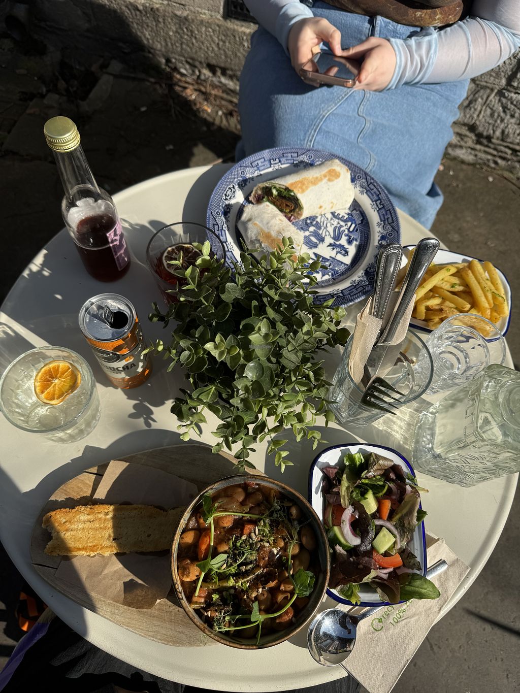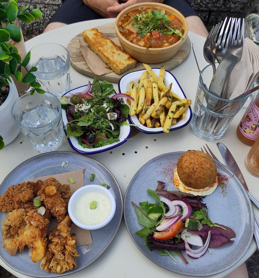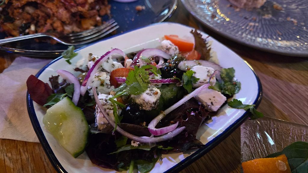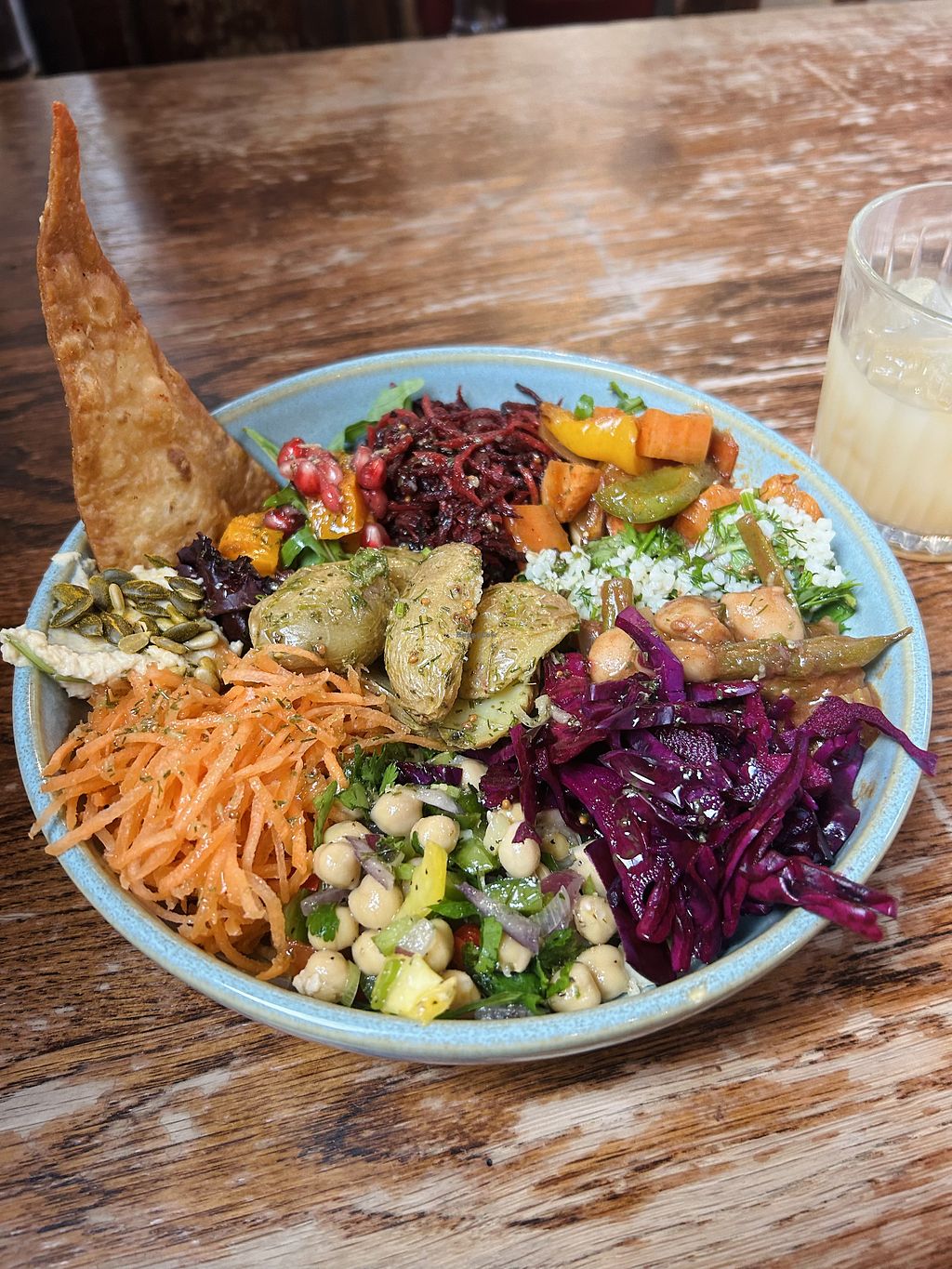 Greek bowl, garlic parsley fries and beet falafel wrap