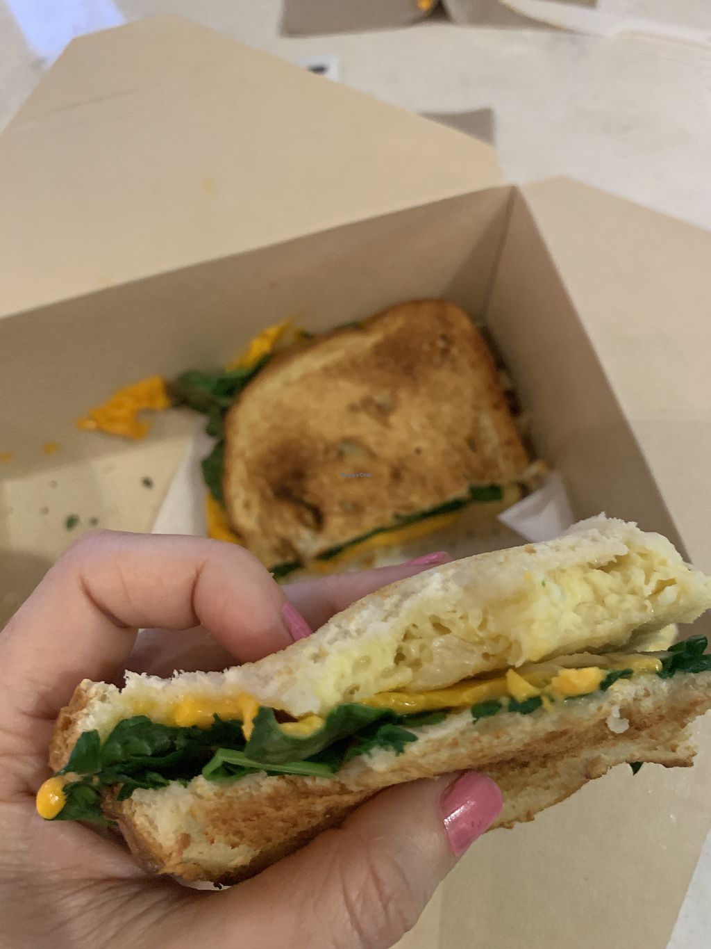 I stopped by here for coffee and was beyond thrilled to find a vegan breakfast sandwich on the menu! Just egg, cheez AND spinach! Ate half before my flight and the other half in flight. So happy to find this filling fix for a long travel day.