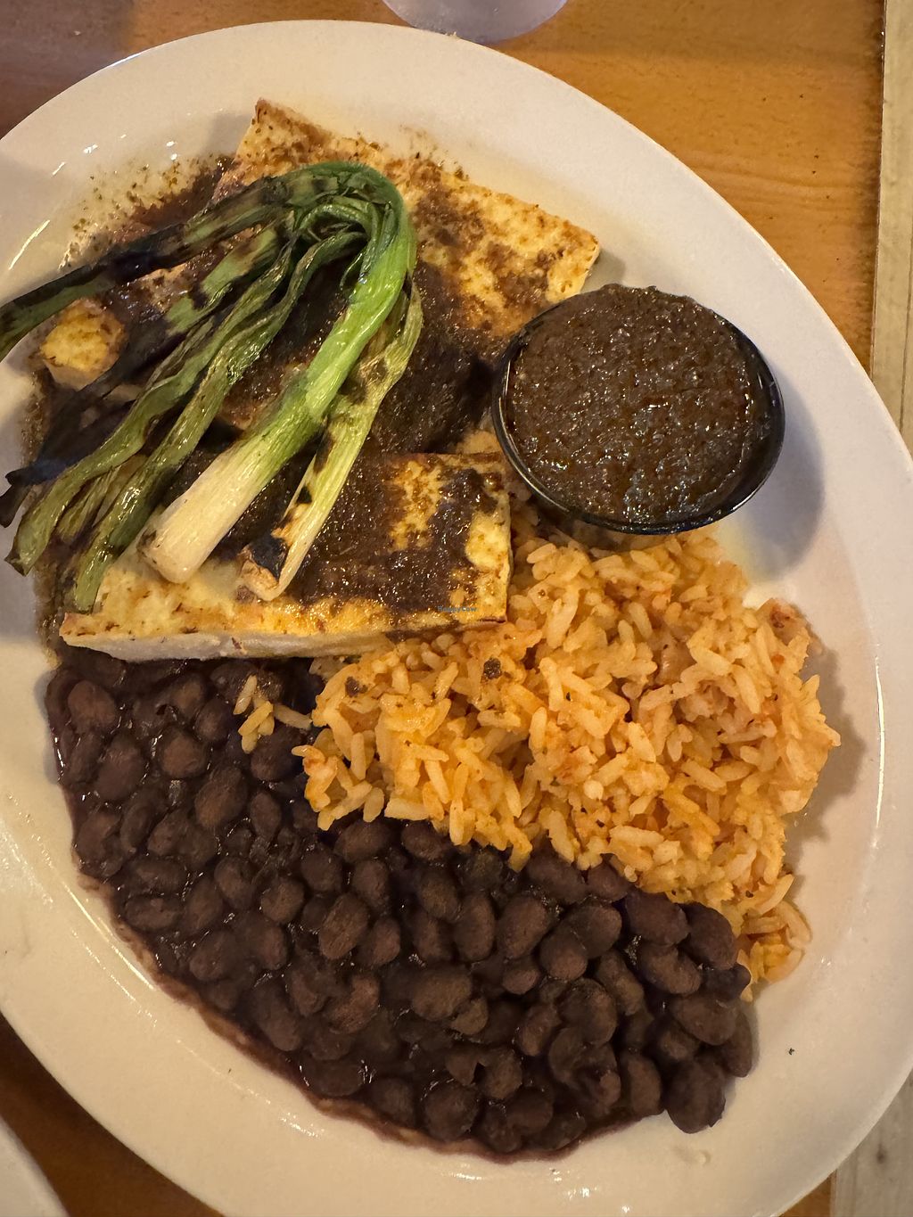 The vegan menu is only available online, but it’s fantastic and staff know it well! We got the jerk tofu which was one of the most uniquely flavorful tofu dishes I’ve tried. The mushroom fajitas were also excellent. Great flavors, lots of margaritas, and seems more affordable than some of the other veg-friendly options in the area!