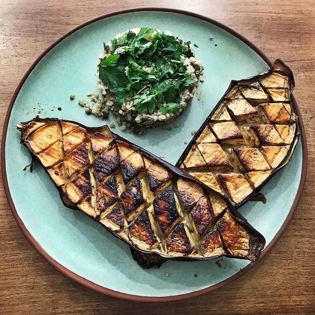 Eggplant + mashed chickpeas