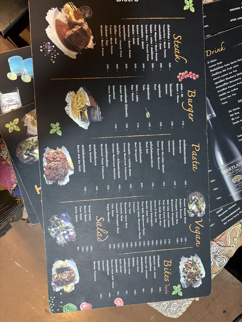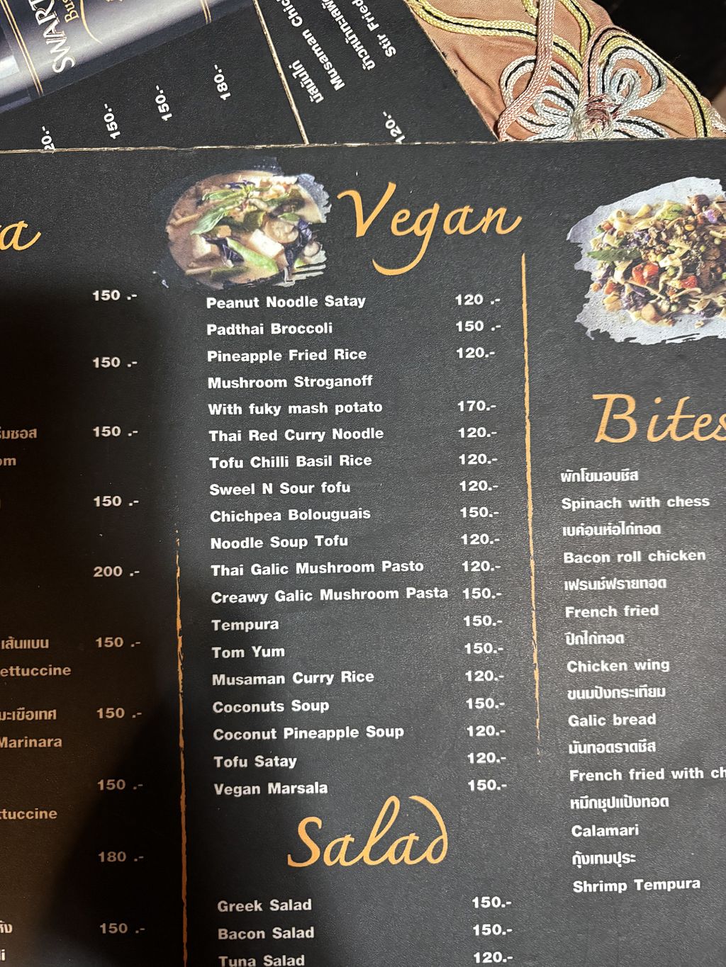 Serves meat, vegan options available. Offers several vegan dishes such as vegan pasta, vegan masala, pad Thai and vegan Thai curries such as massaman. Open Mon-Sun 10:30am-9:00pm.