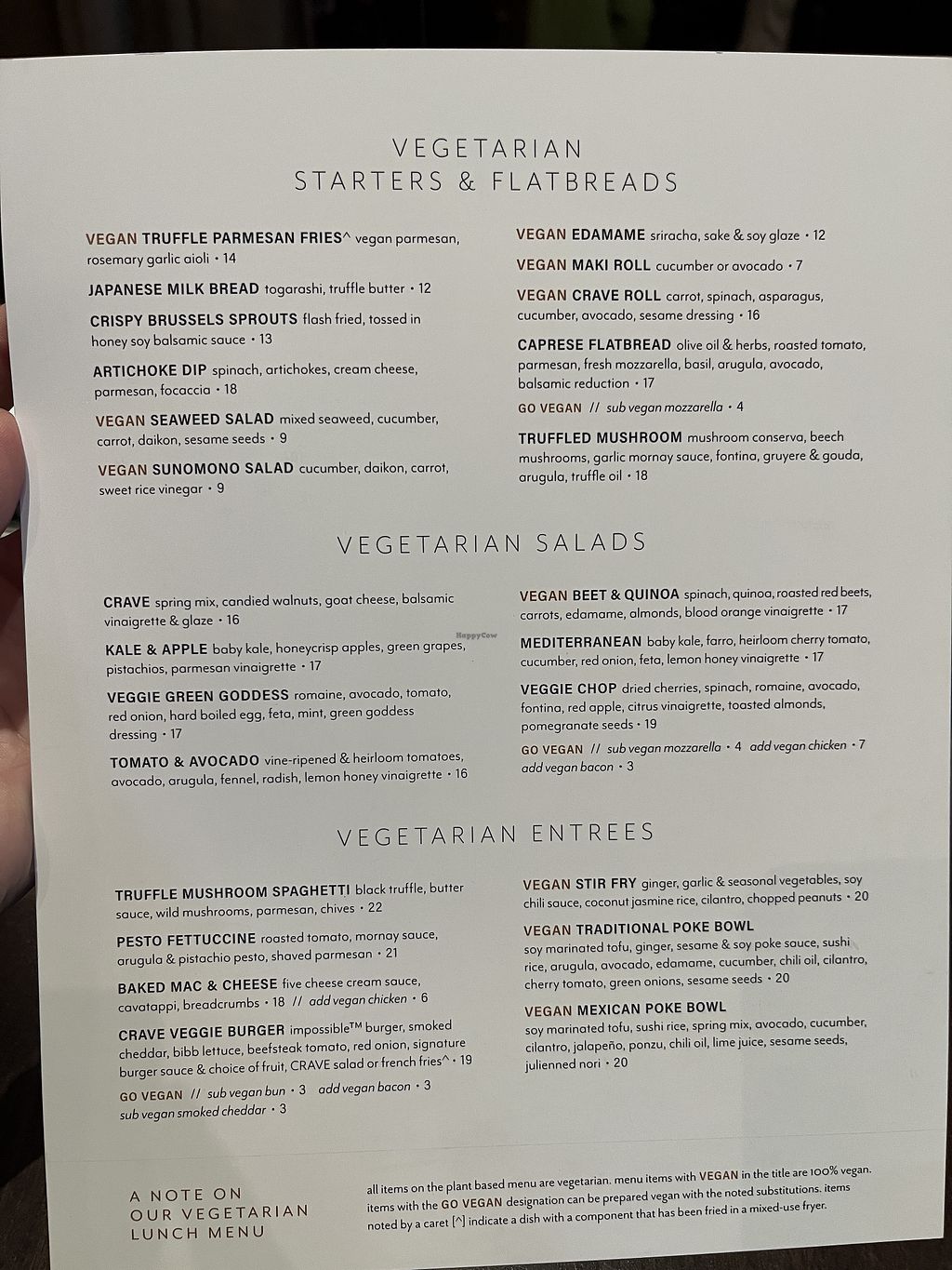 Loved that they had so many options! Their vegan Parmesan fries were incredible. Loved the burger too, although the bun was pretty dry. Will go back someday, overall thought it was a nice place to eat.
