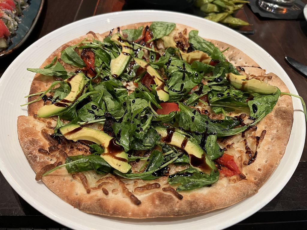 Serves meat, vegan options available. Small chain of American kitchen and sushi bar restaurants. Offers a separate vegetarian/vegan menu with vegan choices including sushi rolls, salads, a stir fry, pasta bolognese, mac n cheese, burger, and flatbread/pizza. Uses vegan replacements like vegan cheese and mayo, chickn and vegan bacon. Open Mon-Thu 11:00am-9:30pm, Fri-Sat 11:00am-10:00pm, Sun 11:00am-9:30pm.