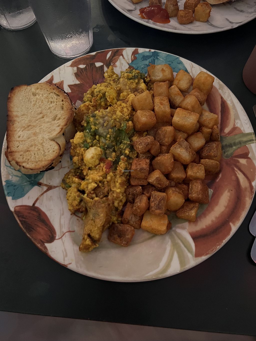 Had a delicious tofu scramble with soy cheese, toast and potatoes along with a vegan milkshake. Staff was very friendly!