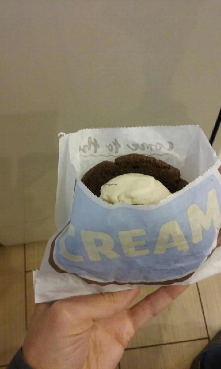 vegan ice cream sandwich with soy vanilla ice cream and choco cookie