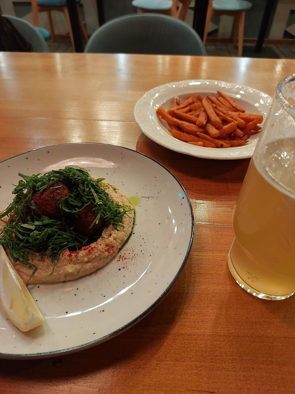 Lacto Ovo Western Beer/Wine Honey Non-veg Serves meat, vegan options available. Restaurant offering some vegan choices including hummus, falafel, fries and panna cotta. Open Mon 10:00am-10:00pm, Tue-Wed 10:00am-11:00pm, Thu-Sun 10:00am-10:00pm. More
