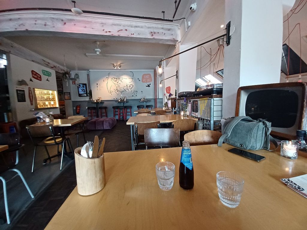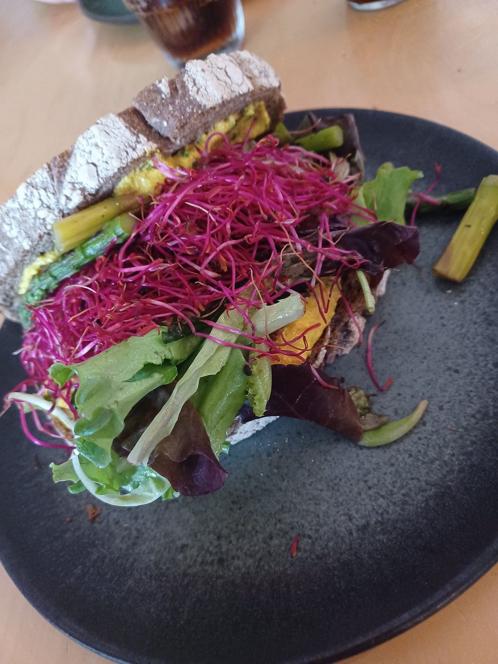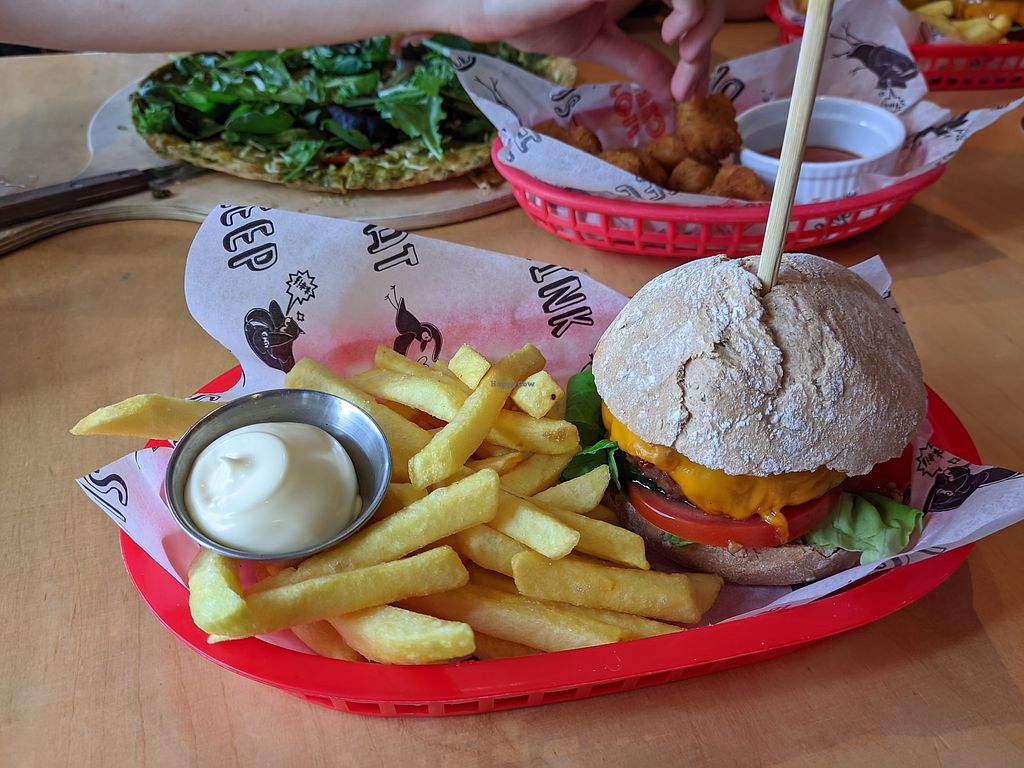 Vegan flahmacun (flammkuchen), portion fries with vegan mayo and O'Har…