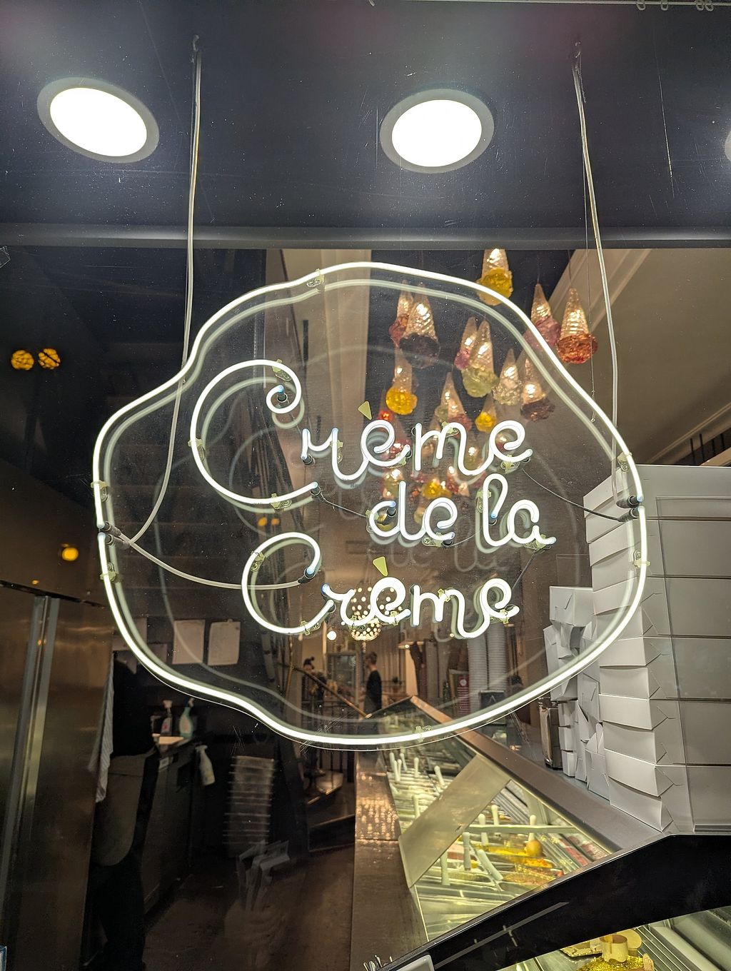 I noticed the place only because of the cakes in the window and decided to go in and ask, if any of them are vegan. None of the cakes are vegan, however they have a really big selection of vegan ice cream, and the cone is also vegan.