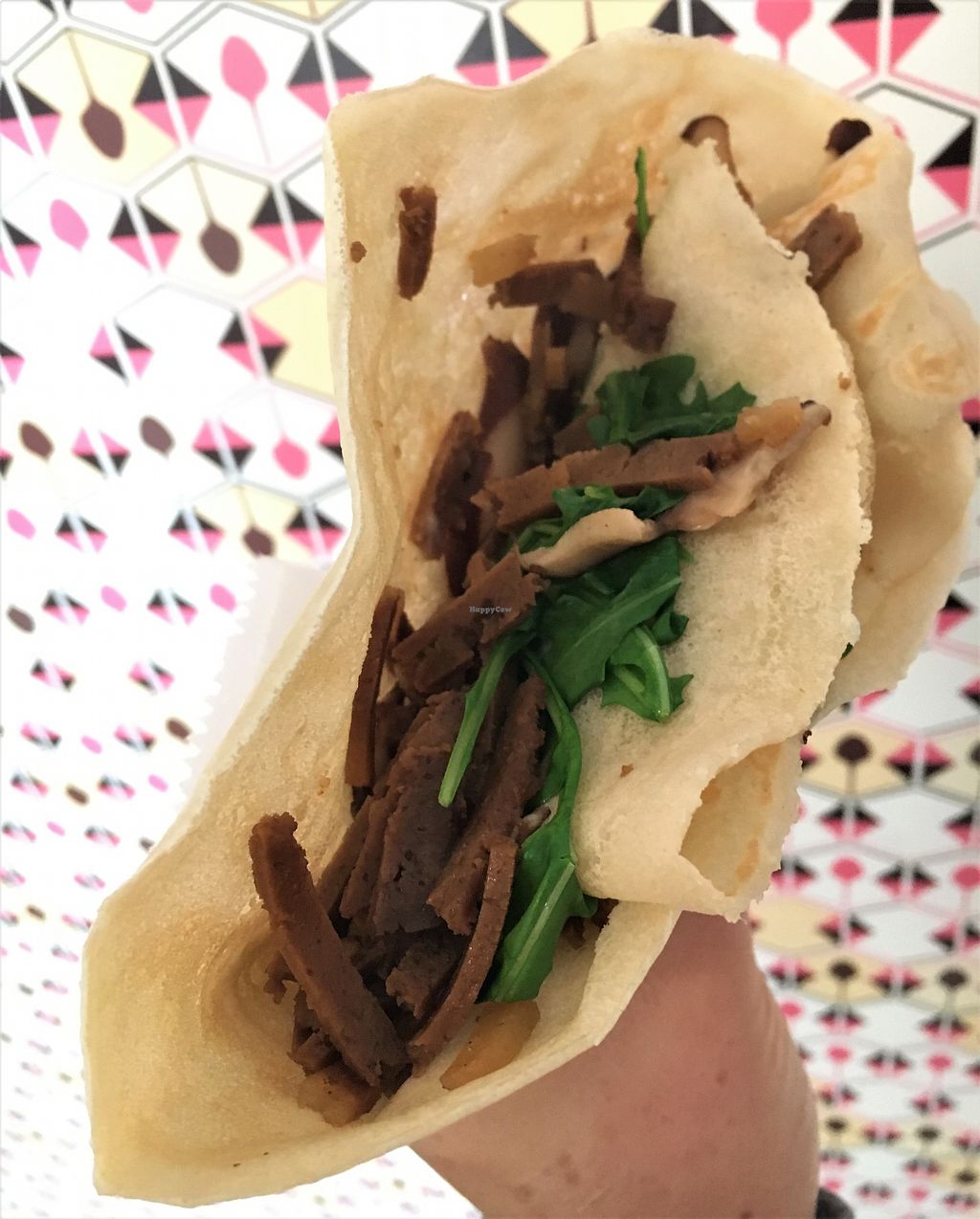 Mac and cheese crepe with ham (all vegan)