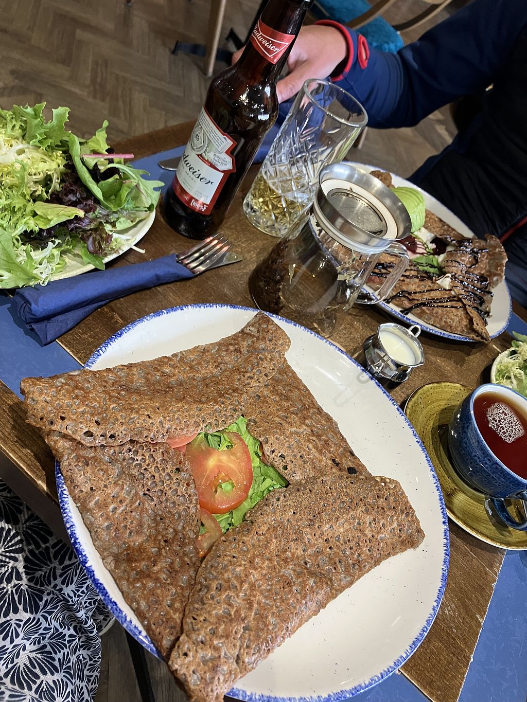 A mouthwatering menu that doesn't disappoint. The vegan galette was pretty good and authentic-tasting. The "Sweet Child Of Mine" crepe was a fabulous combination of flavours. Great teas and coffees, and plenty of vegan options for cakes (we didn't try them). If you are lucky enough to get the seat at the back window you get a great view over the marina to the fort!