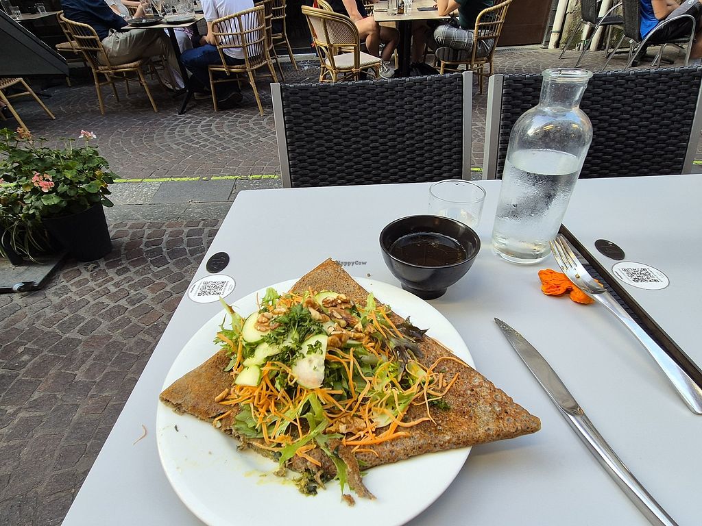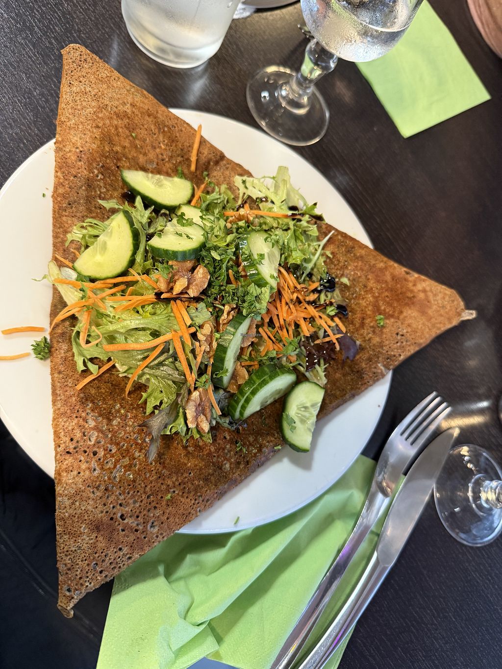 Vegan crepe option (salad on top + potato, spinach and mushrooms insid…