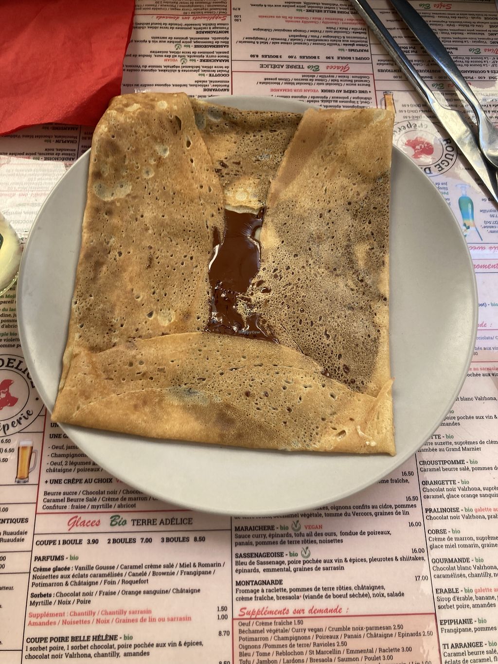 We had a sweet gallette with chocolate, was also good, but I would have liked a Crêpes-style dough veganized more.