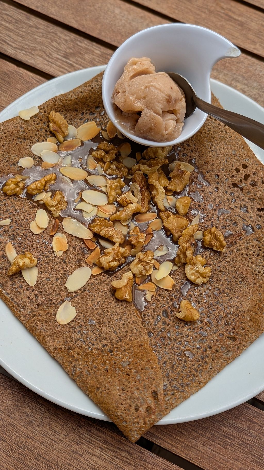 Read moreI only had the tahini buckwheat crepe main course. It was nice enough. A crepe with some fried potatoes, tofu, onion and a small amount of tahini sauce. Would probably try something else the next time and if I hadn't been in a hurry I would have liked to try the dessert crepes as well.
