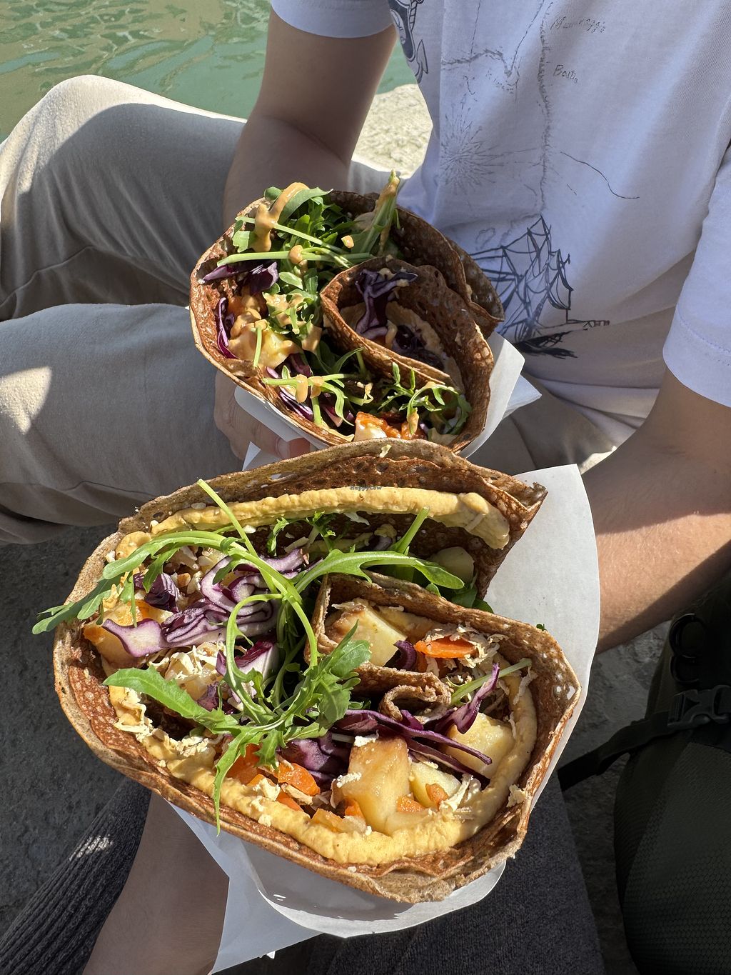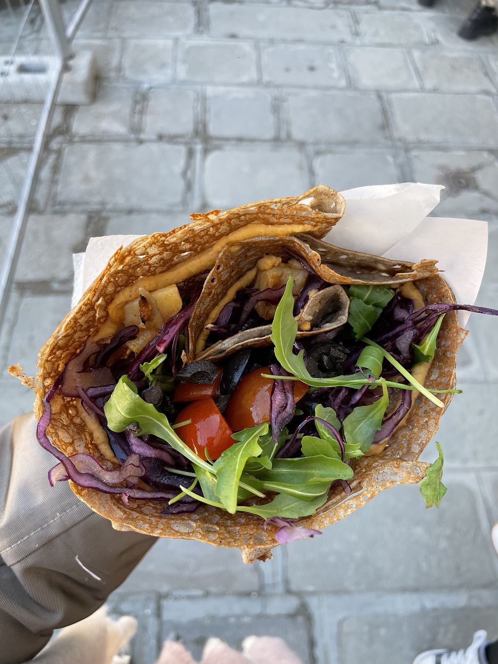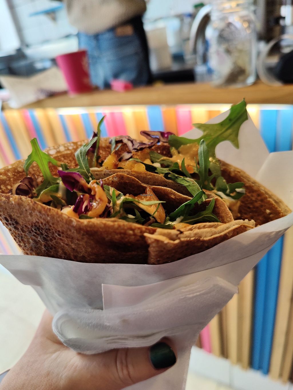 Riquísima crepe salada con humus y verduritas asadas. #Veganuary