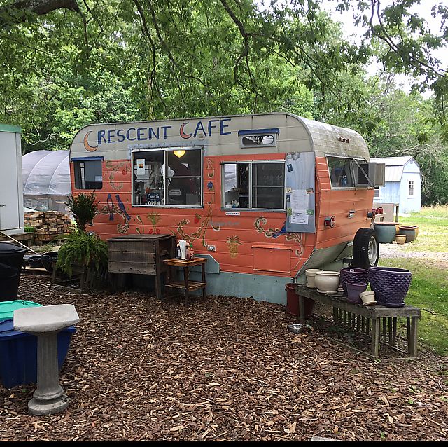 We were on our way from Nashville to Chattanooga and halfway you can find the Crescent Cafe. It's south of the Interstate, not in the centre of Monteagle which is north of the Interstate. There are some chairs and tables in front of the food trailer, the weather was ok, so we sat there having lunch. We had the bean soup, the tomato soup and the TLT (tofu, lettuce, tomato) and a hand-made juice. The owner was very friendly.