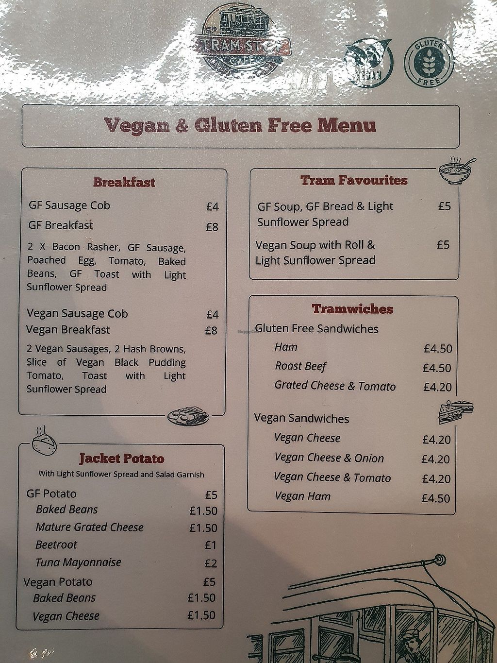 Serves meat, vegan options available. Cafe inside the Crich Tram Museum. Has a vegan menu with sandwiches, soup and pie mash & beans. Ask staff for the vegan menu. Admission required. Open Mon-Fri 10:00-16:30, Sat-Sun 10:00-17:30.