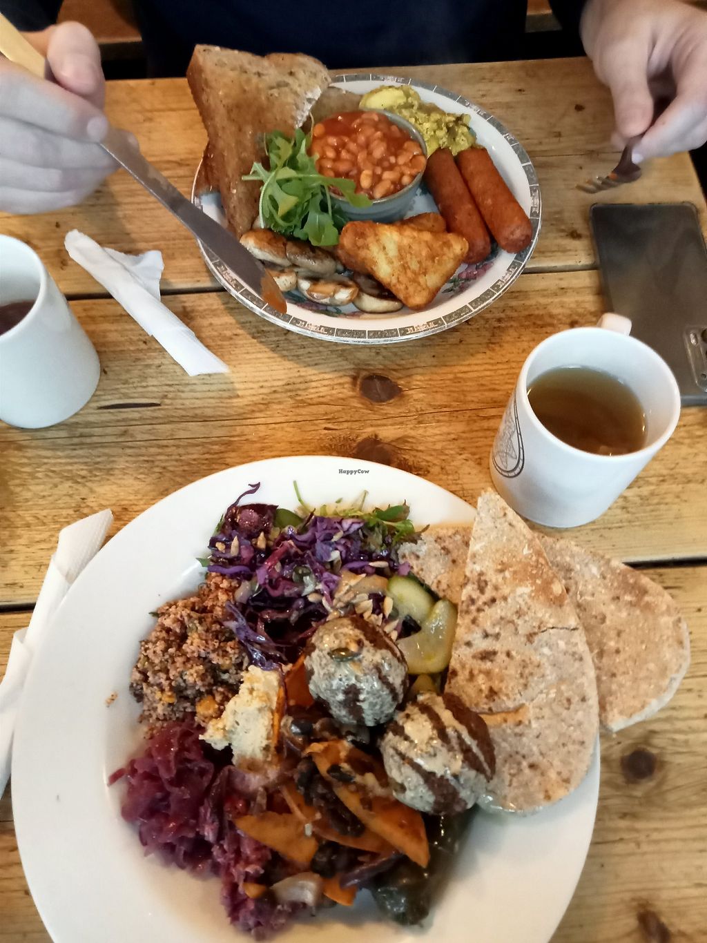 Amazing, hearty, vegan breakfast with a pot of tea is excellent value for money. This lovely little vegetarian/ethical cafe in the heart of its community has several vegan options on the menu.