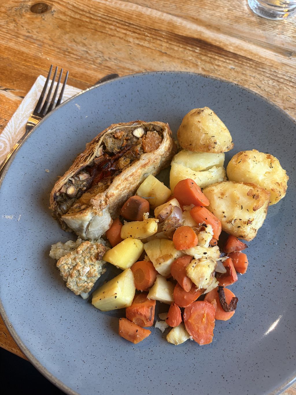 No chicken pie with chips and veggies