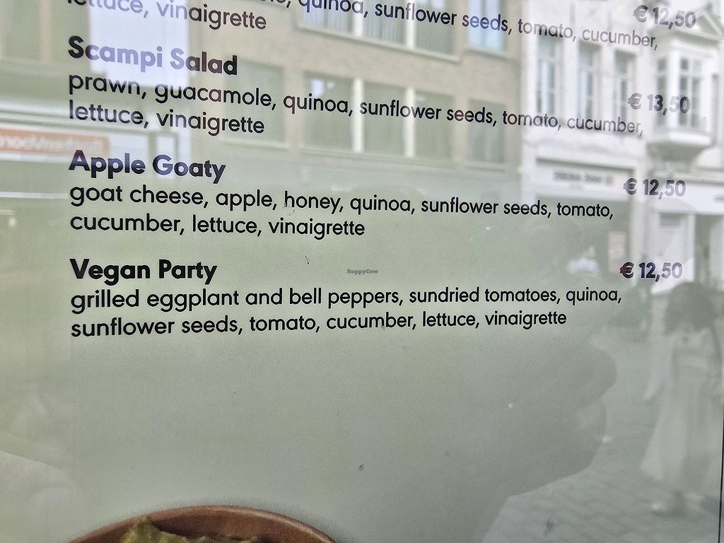 Struggled a bit to find inexpensive lunch options in Bruges so was pleased to find this place. It was good value and had a vegan option for each of its lunch choices - toasted sandwich, wrap and salad bowl. Only a few seats inside but was comfortable and friendly.