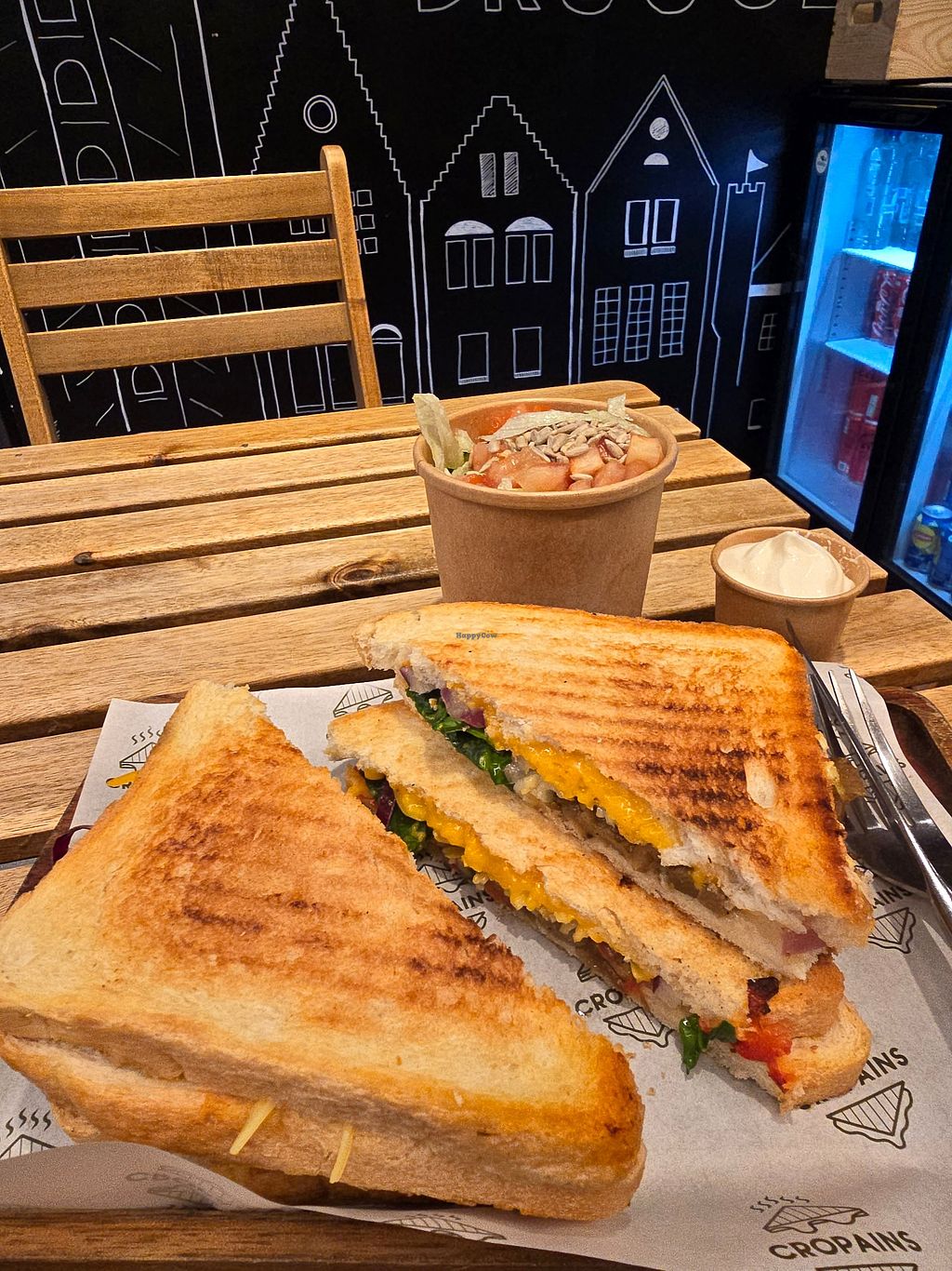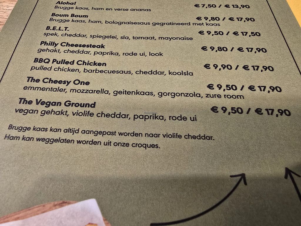 The vegan croque consists of a burger, red beet bacon, lettuce, tomato and veganaise. There is also a vegan wrap. They used to have one with avocado, but unfortunately it's no longer on the menu.