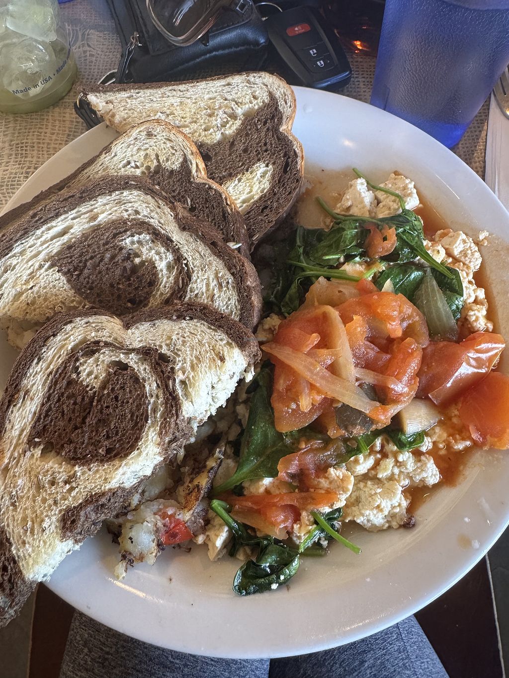 I went for breakfast and really loved the tofu ranchero. You choose from different options.