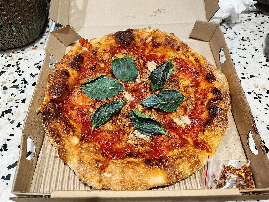 Crosta Basic B pizza with extra basil (sourdough crust)