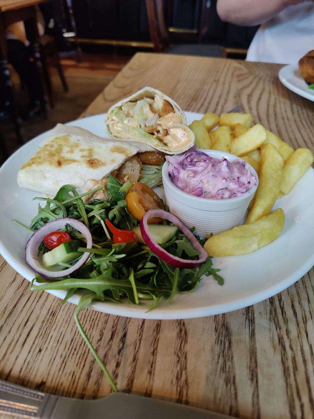 The Crown and Anchor have a separate vegan menu with a good variety, including kids options. All of the staff were friendly and made us and our dog welcome. They have a typical pub drinks selection as well as a variety of zero- and low alcohol beers. The vegan chilli, and the falafel were both very nice.