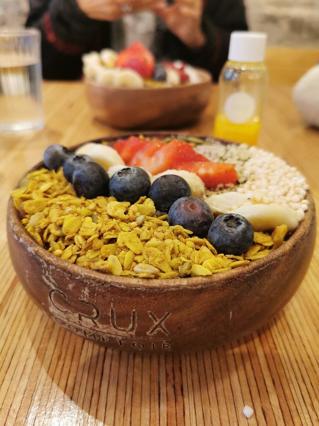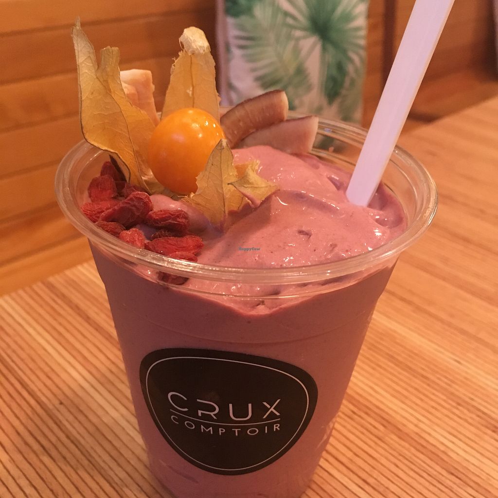 acai to drink, coconut milk, rasperries, mango, goji berries