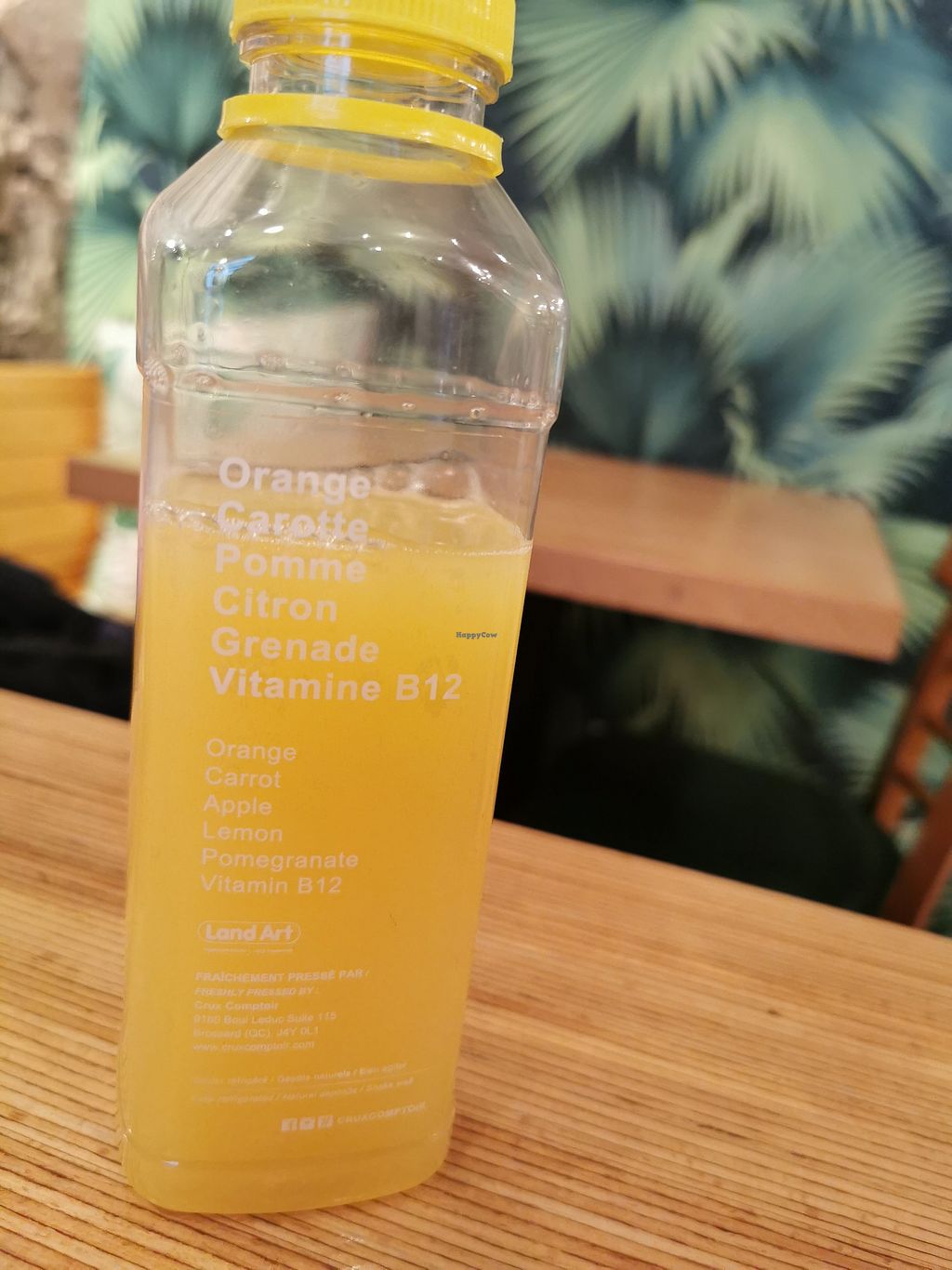 coldpressed juice : orange, carrot, citrus, vitamin b12, grenade