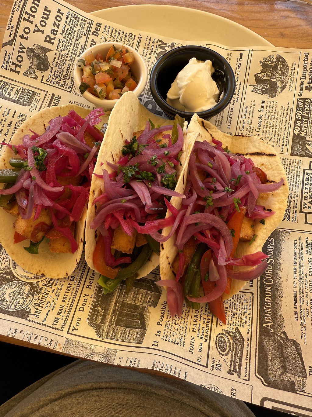 While on vacation on a cruise I stopped here with my fiancé. We both got the Vegan Tacos and they were delicious!! I love how they had a whole section just for vegan food!
