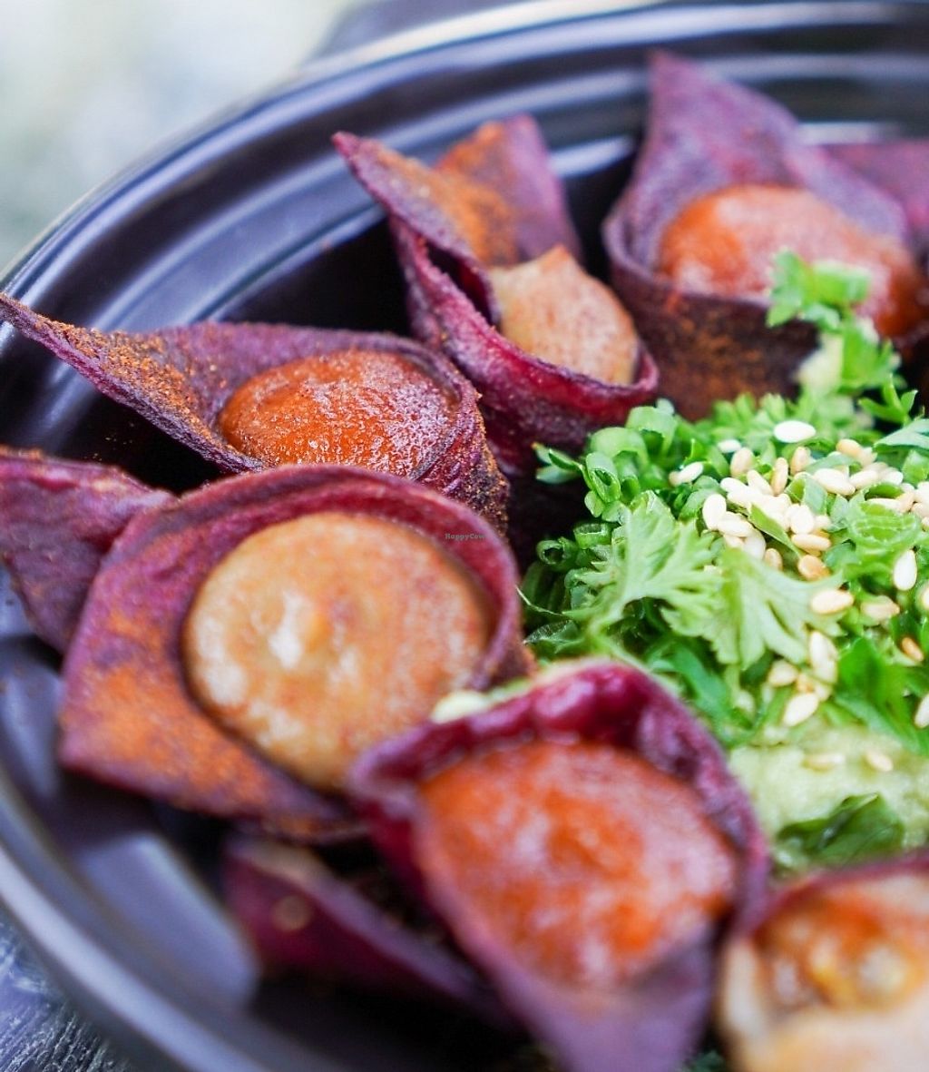 Serves meat, vegan options available. Upscale Indonesian restaurant offering a fine dining experience. Has a full vegetarian/vegan menu that offers a variety of dishes such as vegan sticky rice, nachos, vegan Bali breakfast, broccoli Caesar, bbq eggplants and more. Open Mon-Sun 12:00pm-11:00pm.