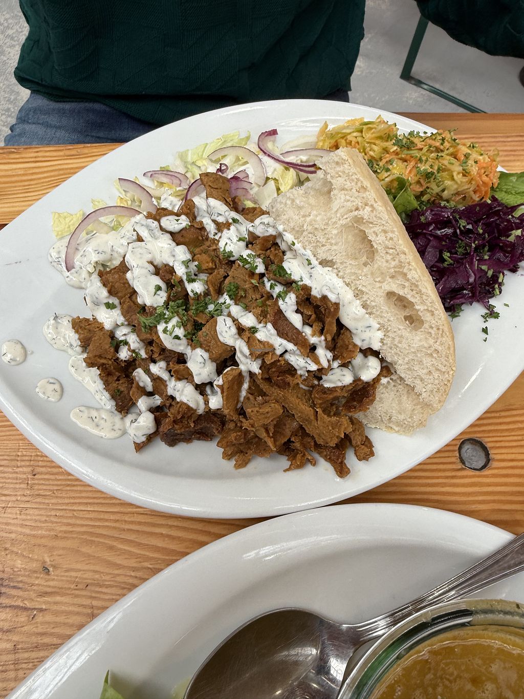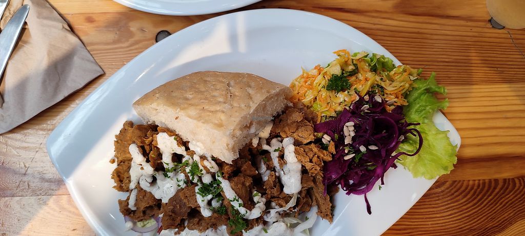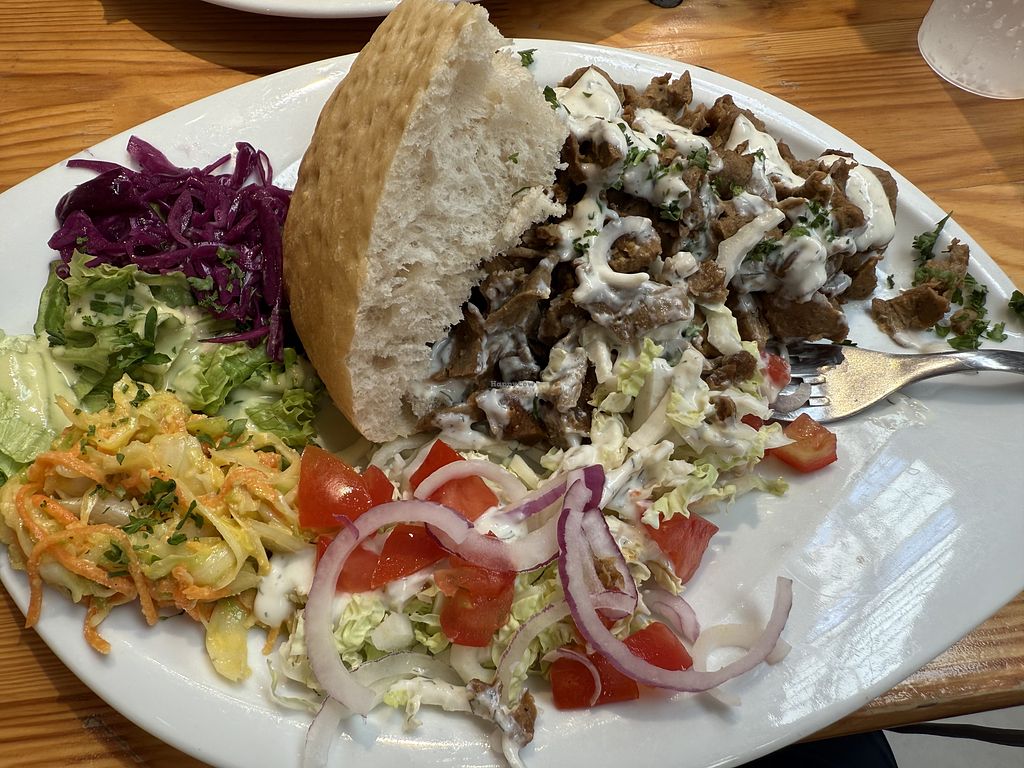 Seitan in bread with lots of salad. Tasty!