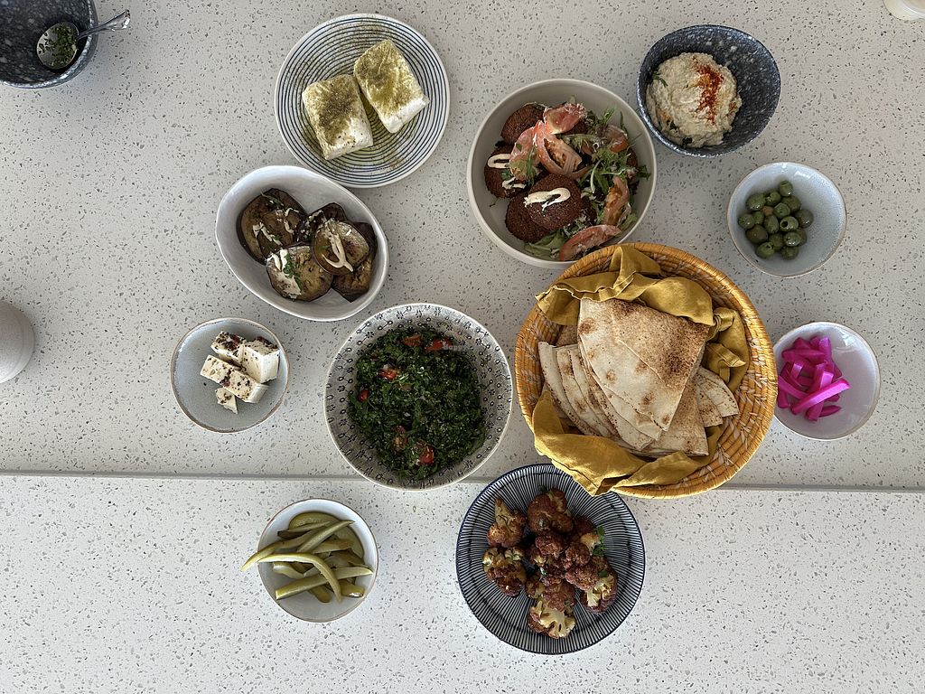 Serves meat, vegan options available. Cafe serving western and Lebanese food, acai bowls and drinks. Offers a vegetarian platter consisting of falafel, tabbouleh and other mezze that is vegan-friendly. Open Mon-Fri 6:30am-5:00pm, Sat 6:30am-6:00pm, Sun 6:30am-7:00pm.