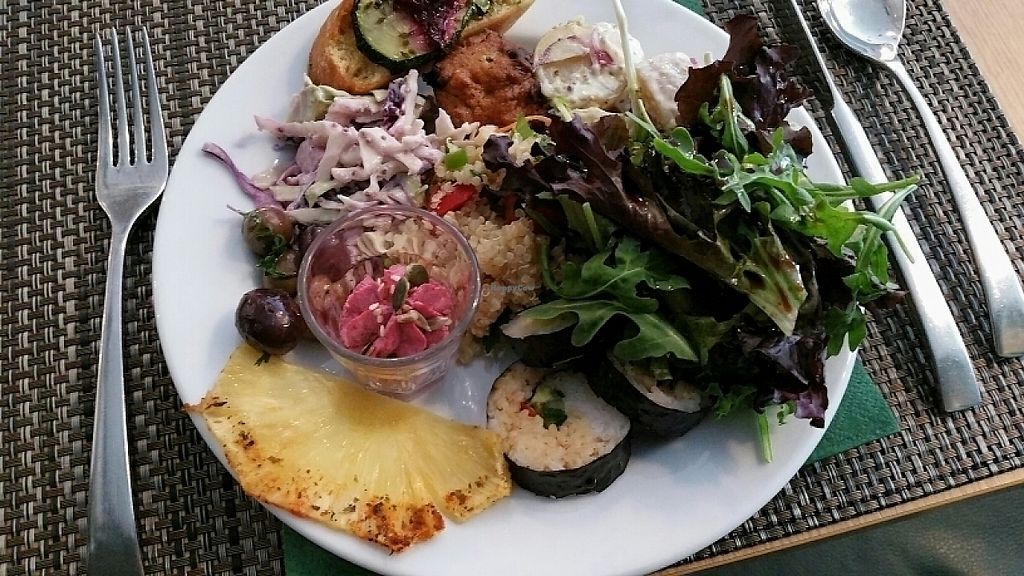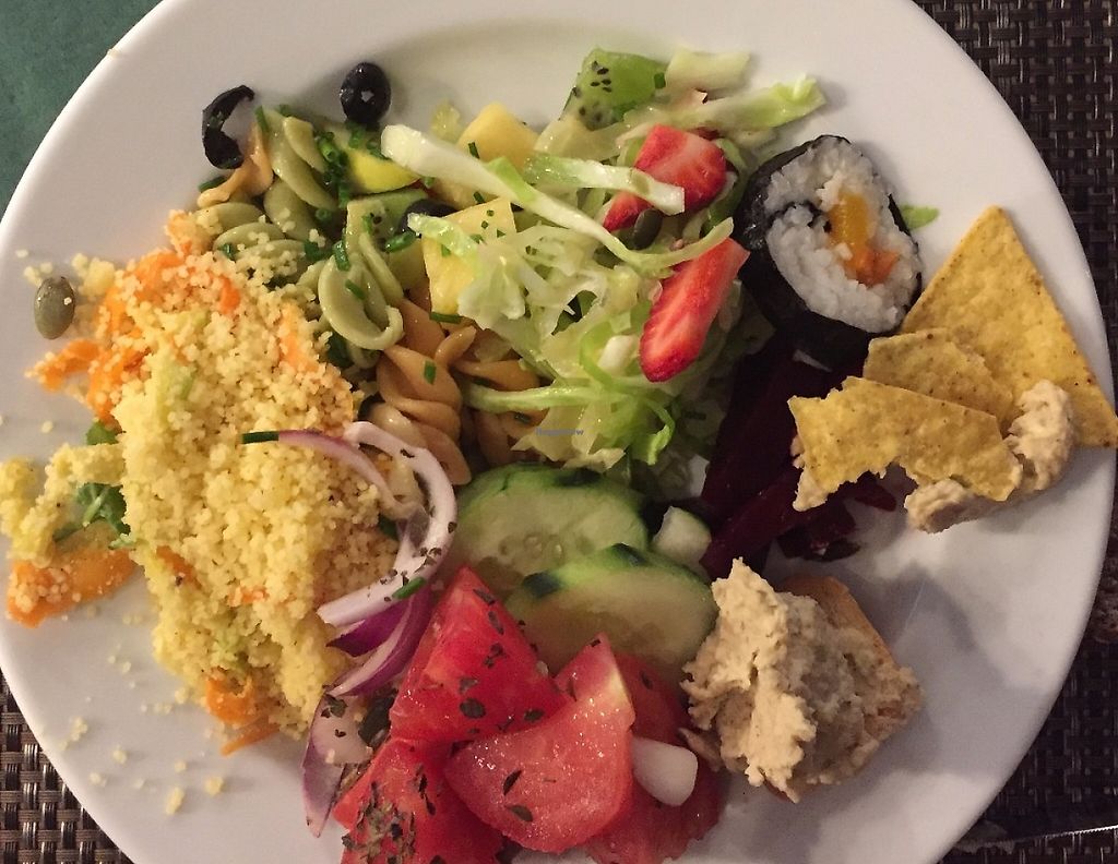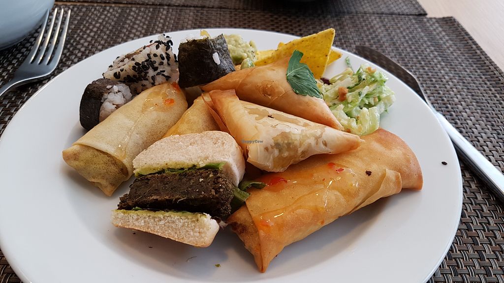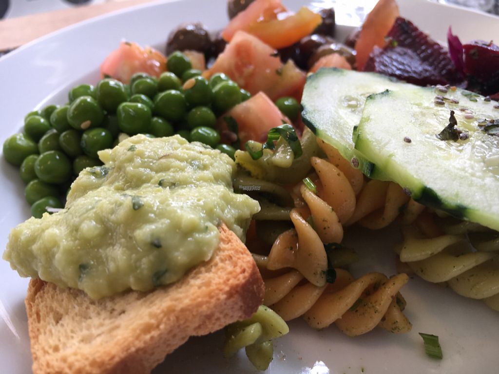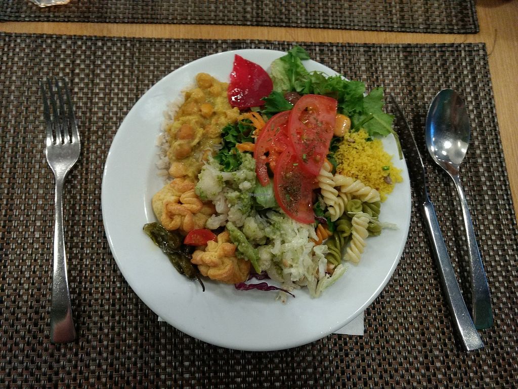 Spiritual tofu, soya bites, roasted mixed veg, salad, tomato rice, pea…