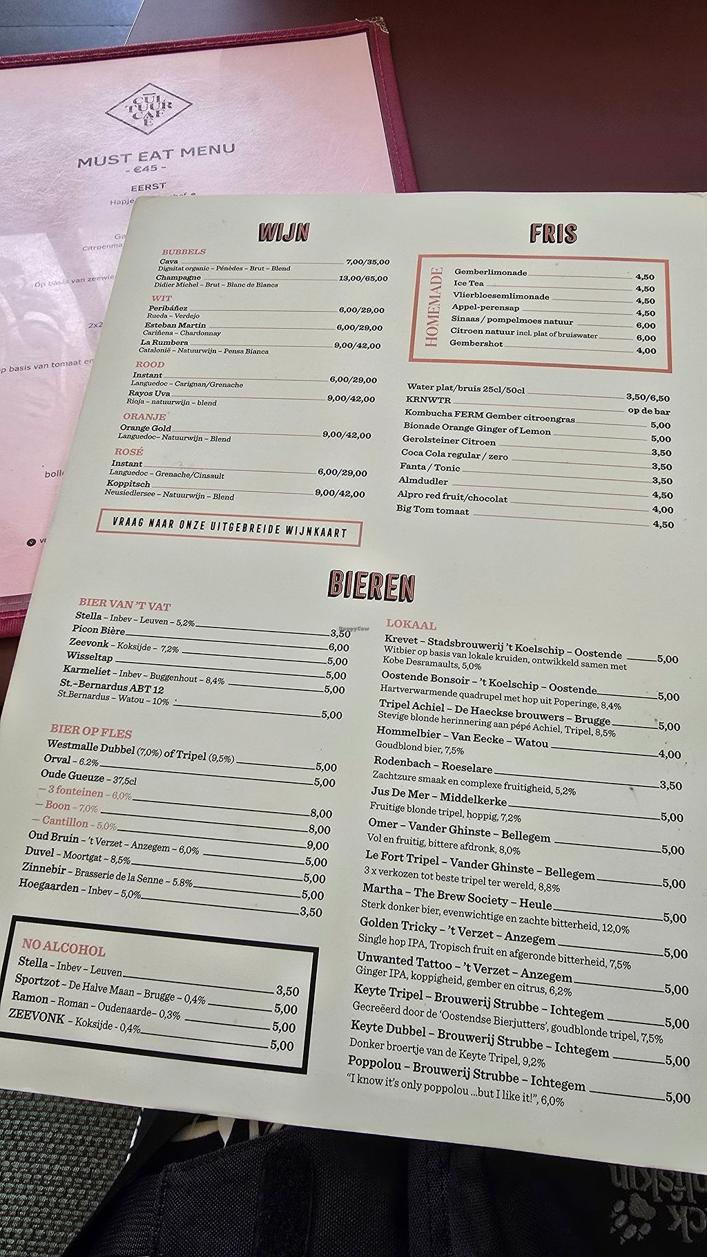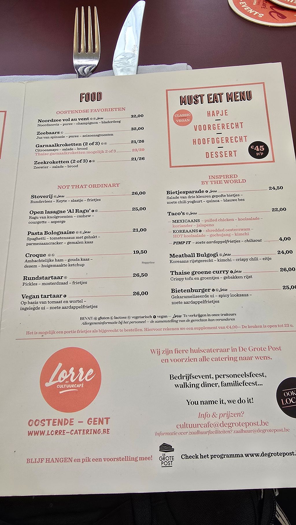 Vegan menu