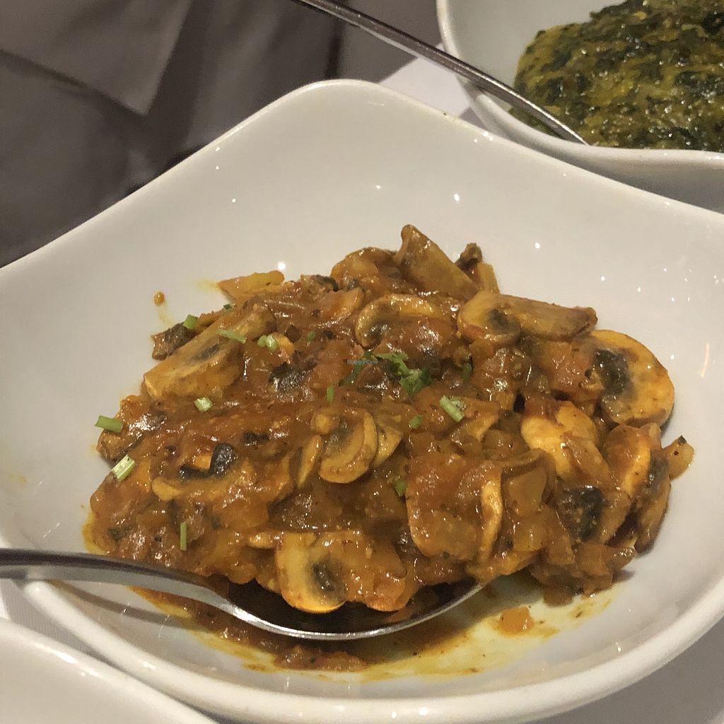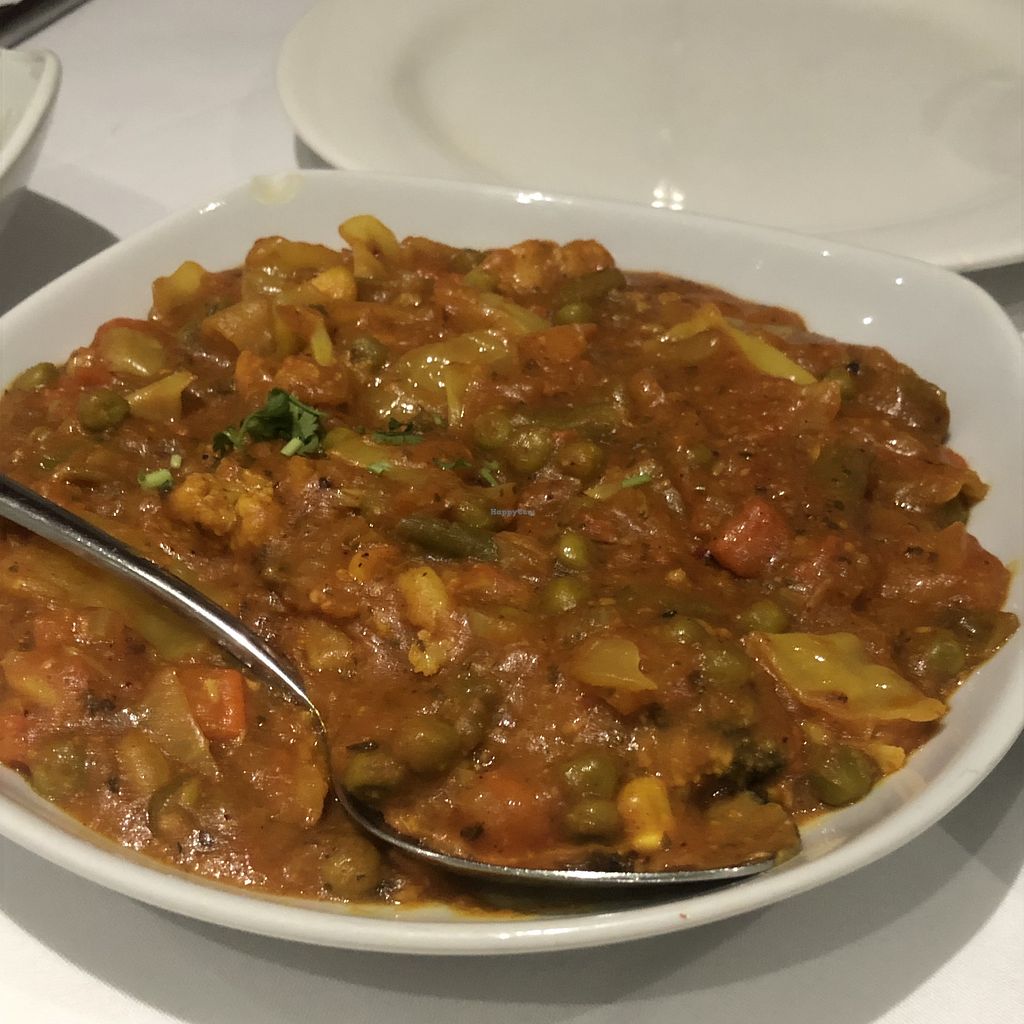 Serves meat, vegan options available. Authentic Indian restaurant with vegan choices. Menu is clearly labeled and includes gobi sag, aloo gobi, vegetable curry, chana masala, Bombay aloo and more. Open Mon-Sat 17:00-23:00, Sun 13:00-22:00.
