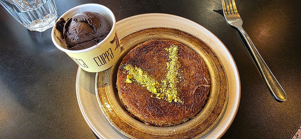Kunefe (vegan) with dark chocolate icecream