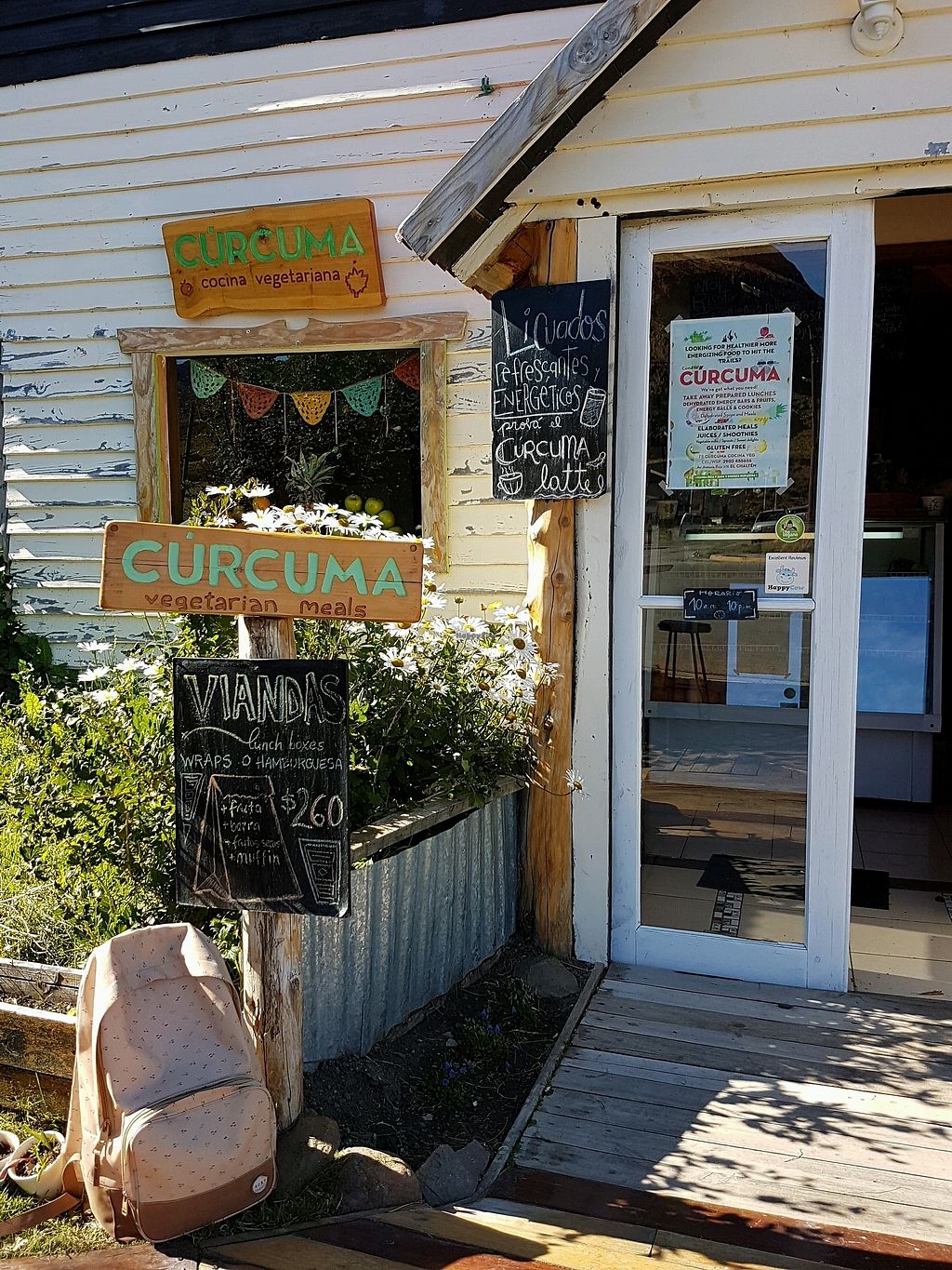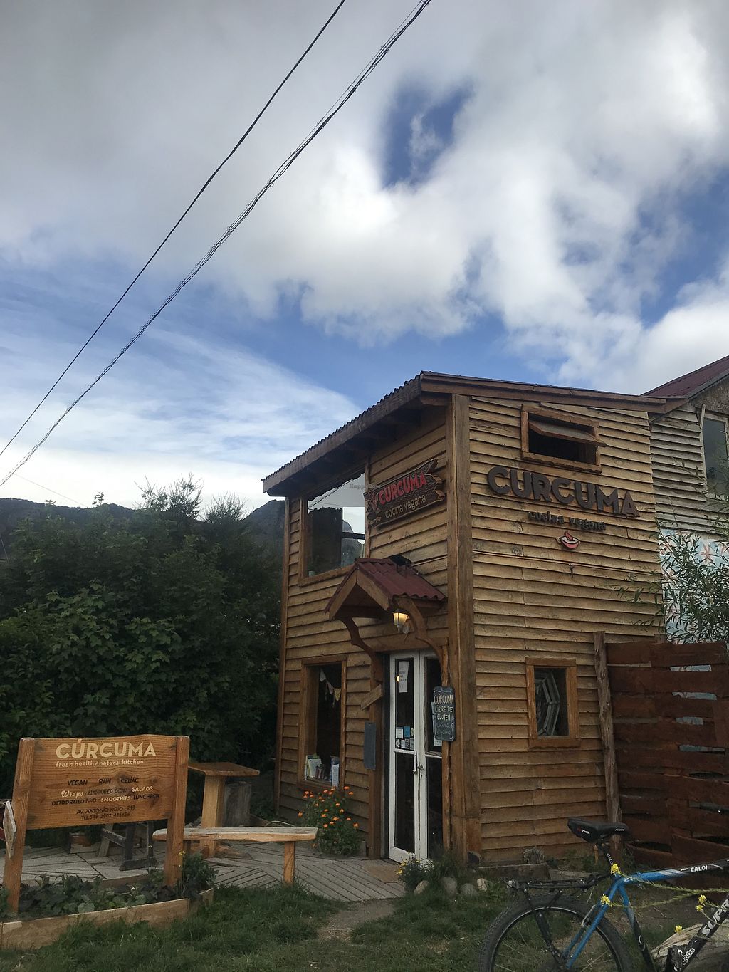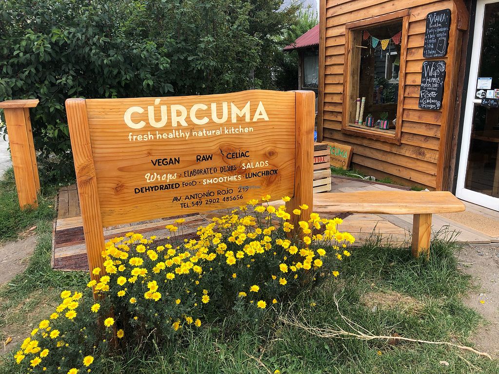 I had food at Curcuma three times during my stay in El Chalten. The first time I ate there in the afternoon, it wasn't crowded, nice chilled atmosphere, excellent food (hamburguesa, but gluten-free without any bun, with lots of side servings). The second time I ordered the wraps for take-away in the very early evening, which was also very very good. Went to go there one evening again, but it was very crowded, loud hectic music, no chance to get a table. So I ordered again for take-away, the atmosphere wasn't very pleasant anyway. This time the food was not good, the stuffed eggplant was very bitter, the adjoining vegetables not properly cooked. So I wouldn't recommend to go there in the evening, and would recommend you don't order the eggplant.