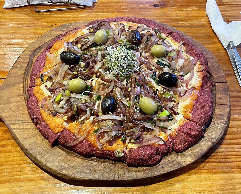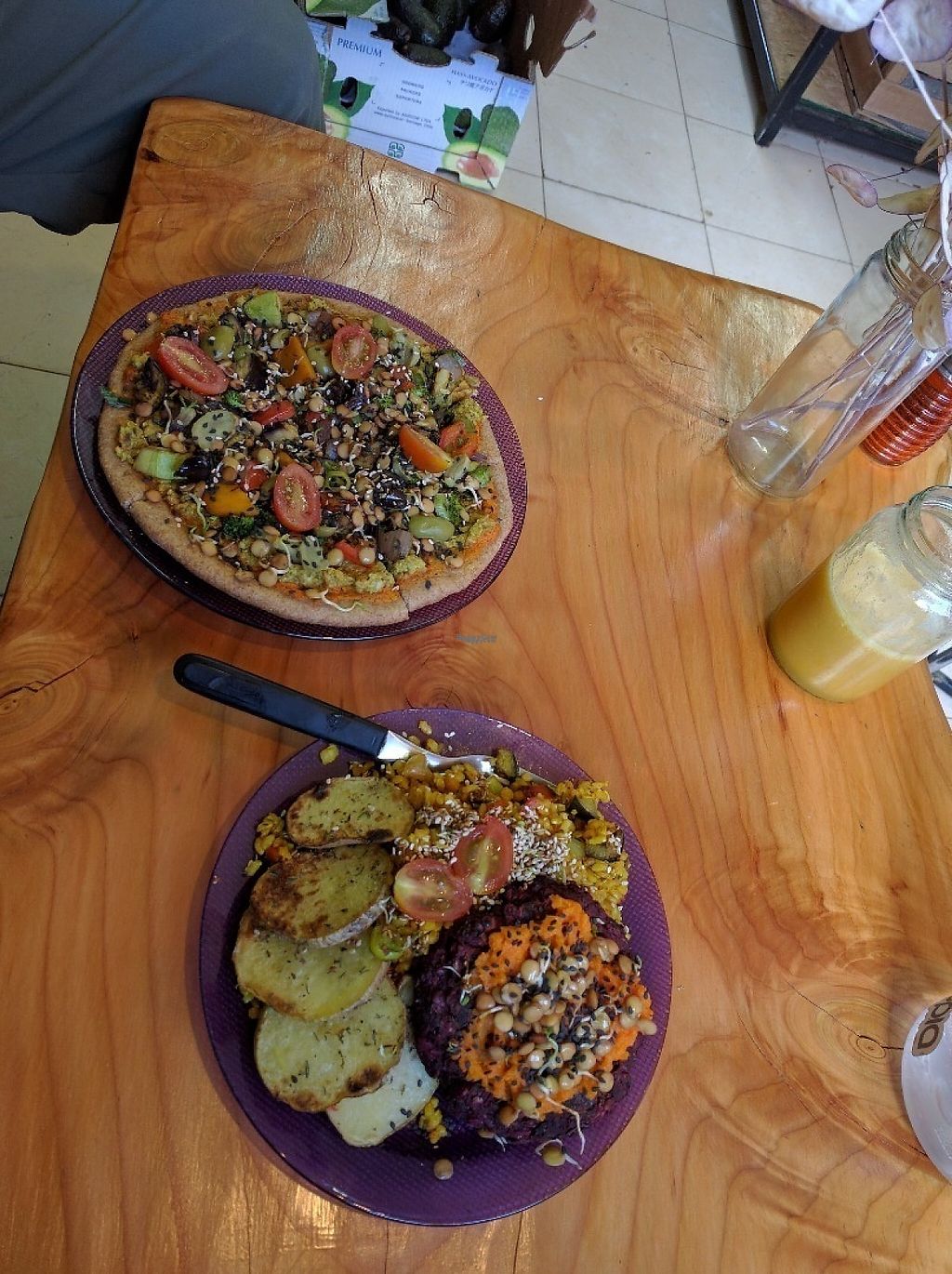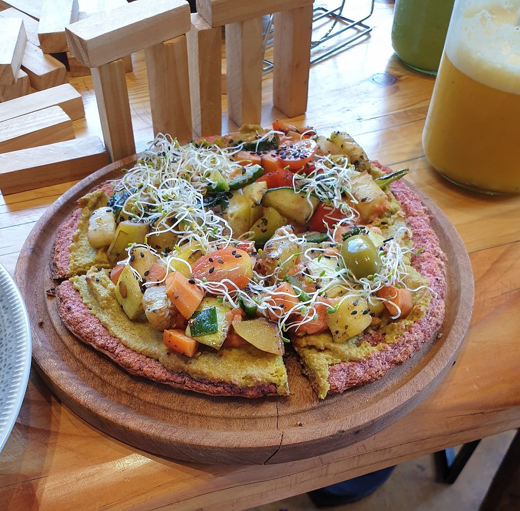 Deliciously flavored food. The pizzas are wonderful as is the zucchini noodle dish. Enjoyed the chocolate smoothie very much! Felt bad for the 2-3 staff working as they were super busy which resulted in our food taking an 1.5hrs to arrive. Our server brought hummus and veggies over around an hour in to hold us over- very kind gesture.