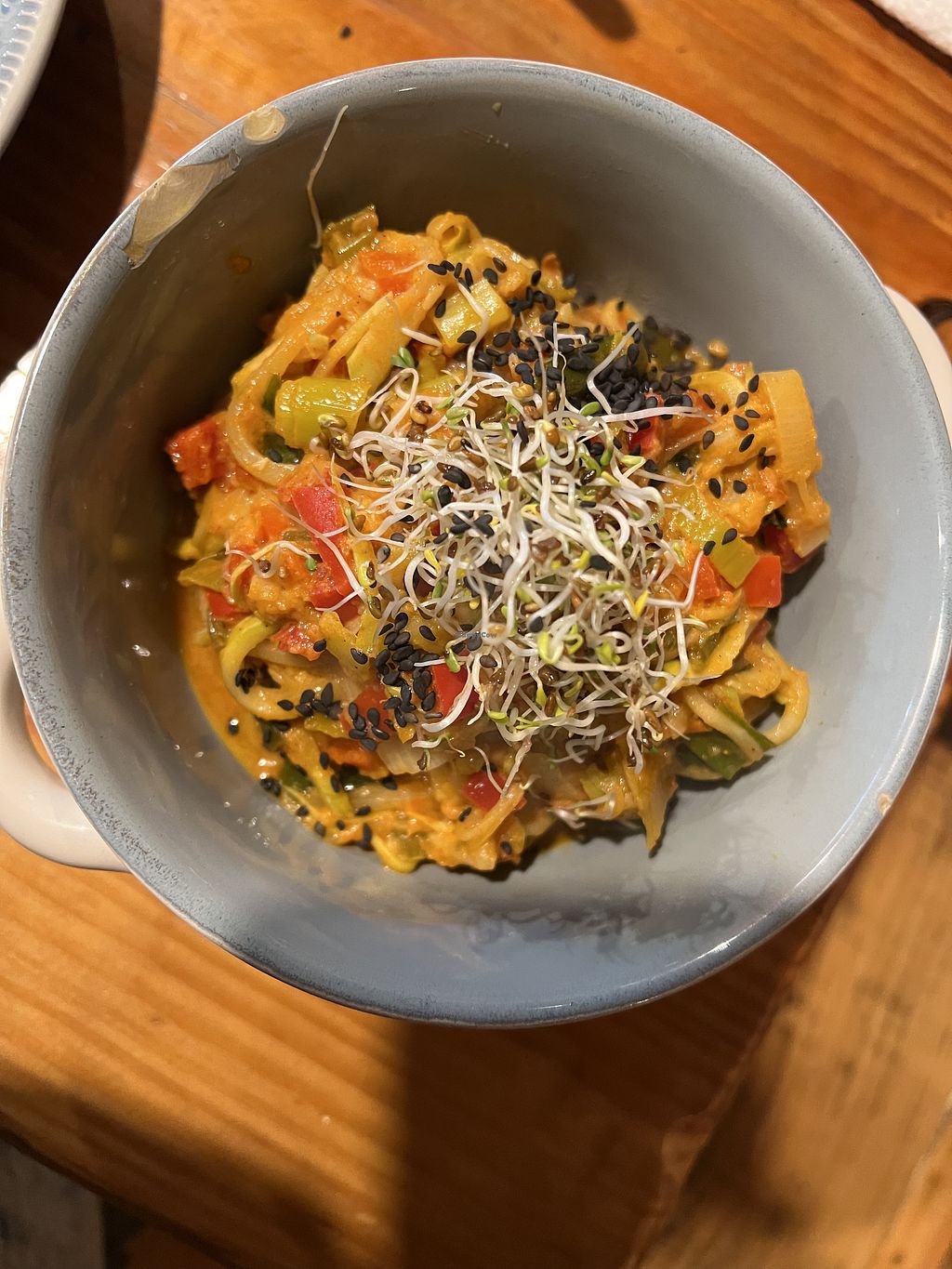 The food was great, the cashew cream dessert was very good and the zoodles were amazing as well.
