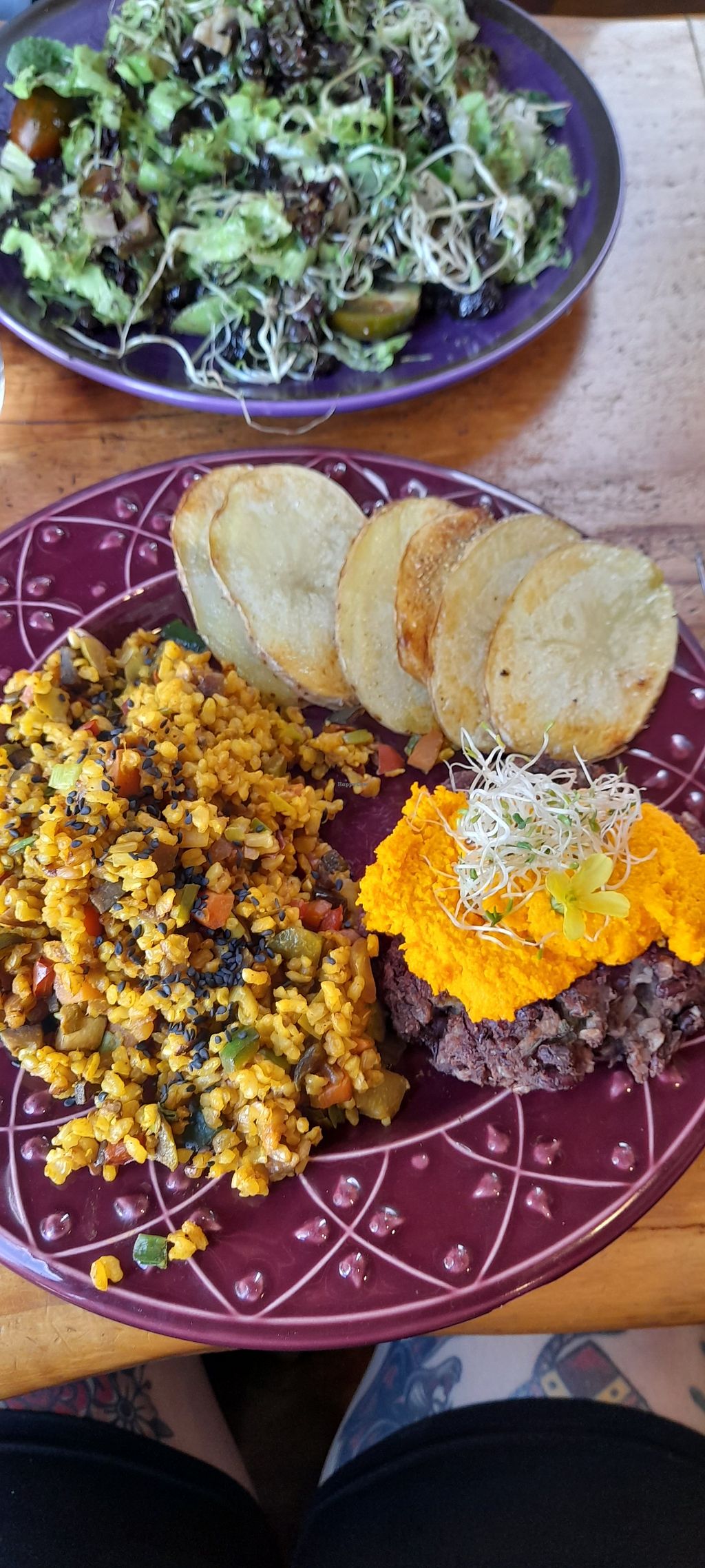 The burger comes with fried rosemary potatoes