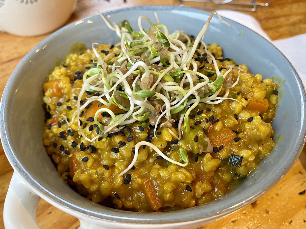 This restaurant serves exactly the type of food that judgy people think vegans eat all the time. Sprouts, carrots, pizza base not made from flour but from strange ingredients, burger without bun etc. The food was okay but a little blend.