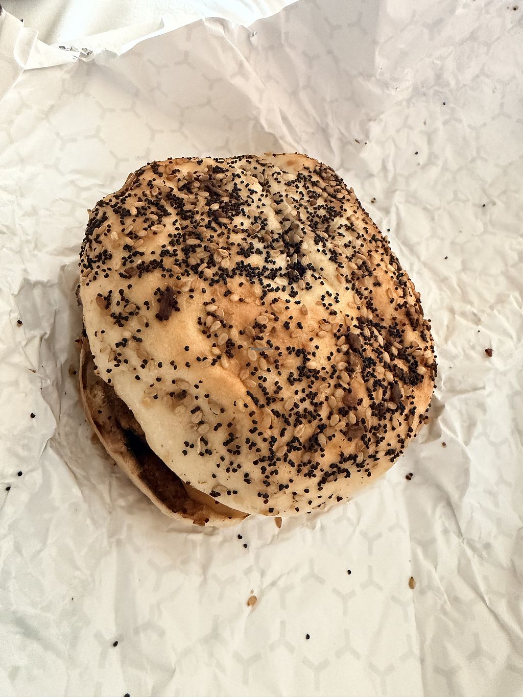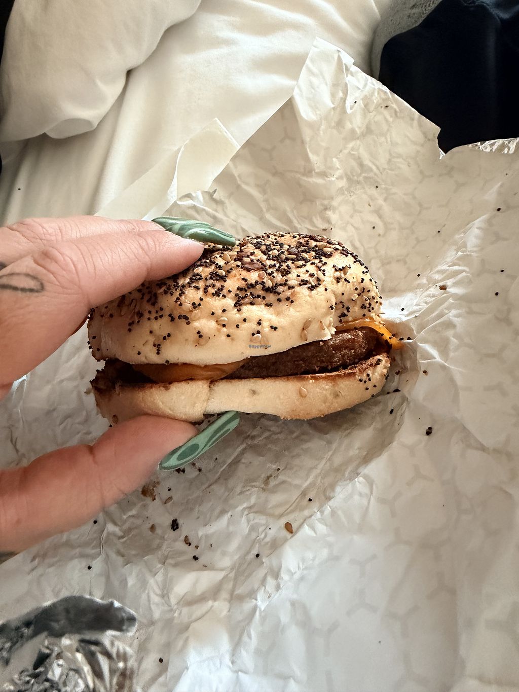 I found out about this coffee shop through Purple Cow. Not a ton of reviews, but thought I’d give it a try. I got the vegan sausage sandwich on a bagel and an oat milk matcha latte. Both were good! It’s nice that the coffee shop offers these- they even had vegan cream cheese!