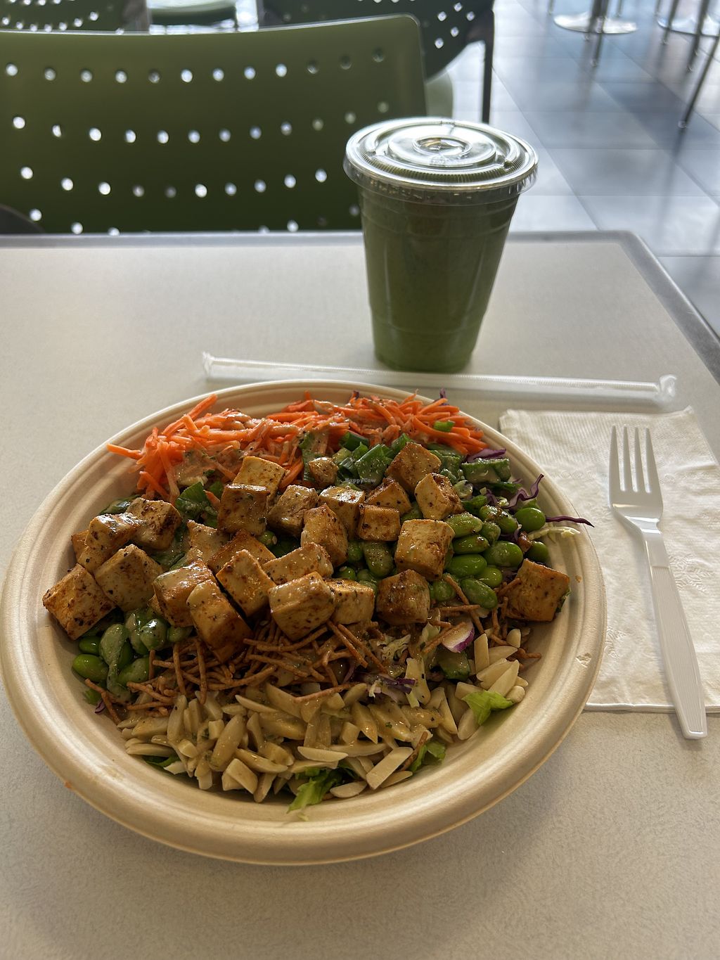The Spicy Thai salad with tofu was really good! Unfortunately, they made a mistake and gave me chicken initially 🤢. Might want to be extra careful when ordering here!