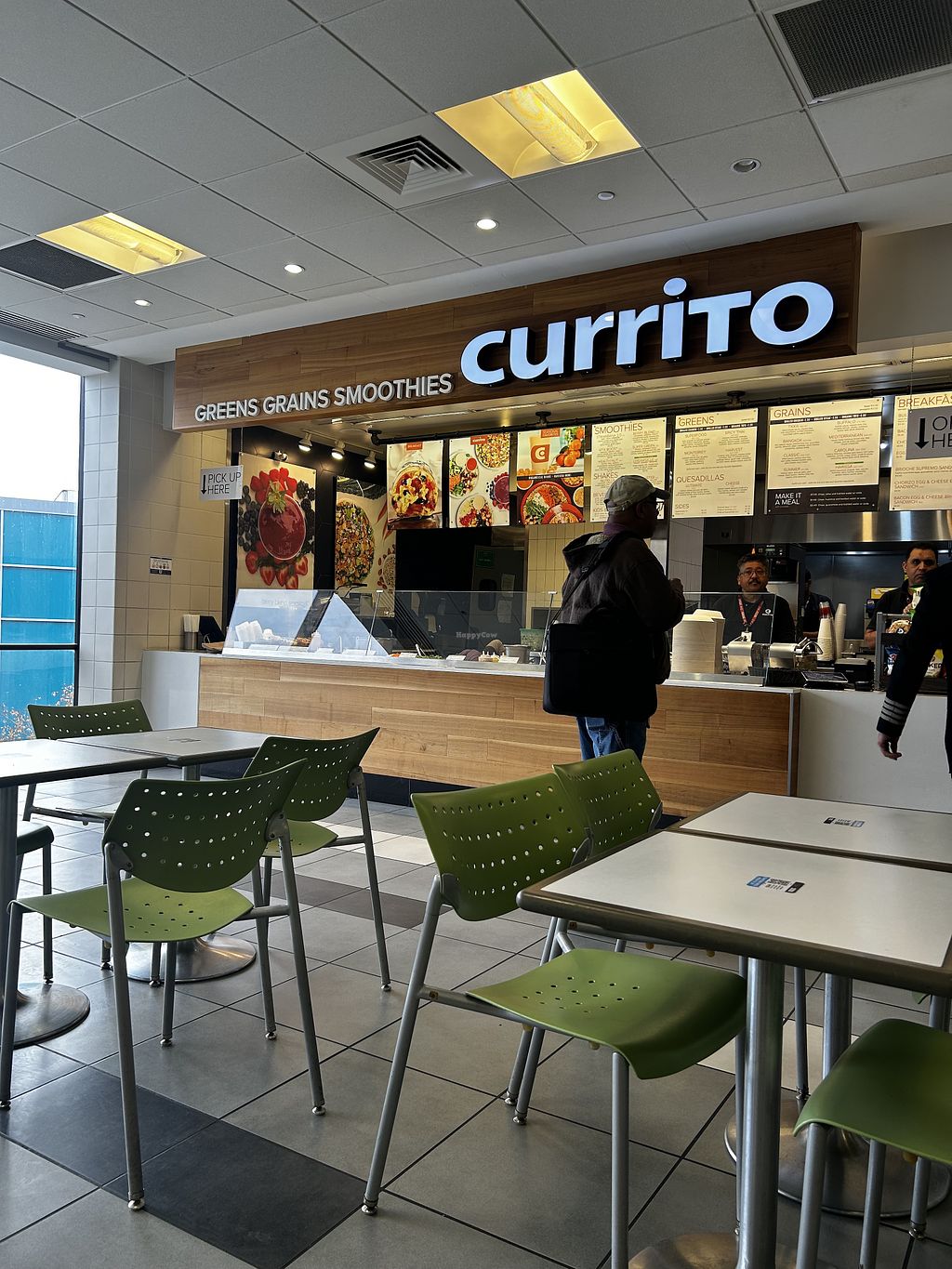 They have lots of vegan options and a menu online that labels which ingredients are vegan, which are the majority. Currito is located at the beginning of Terminal D and is worth a stop.