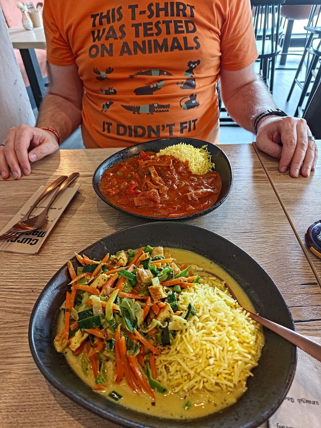 Die Auswahl an veganen Gerichten ist groß (z.B. Biryanis, Currys, Suppe) & alles hat mir/uns bisher super geschmeckt 😋