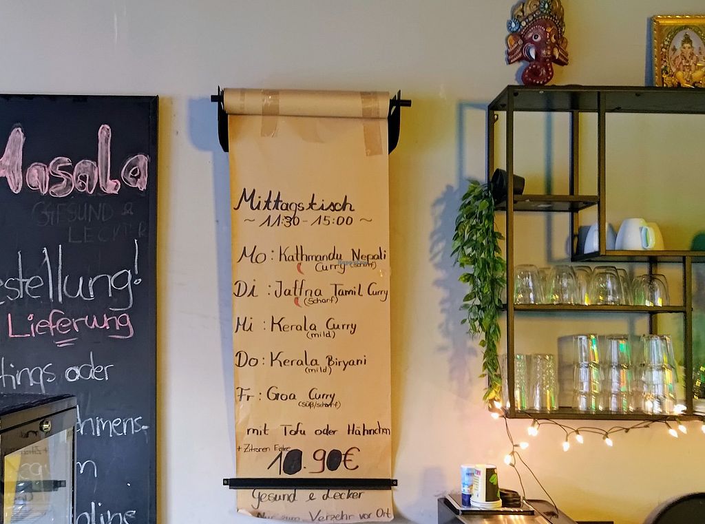 Mein Highlight sind die veganen Mango-Lassis (Achtung, es gibt auch nicht vegane zu kaufen). Super große Auswahl an veganen Gerichten.