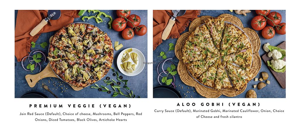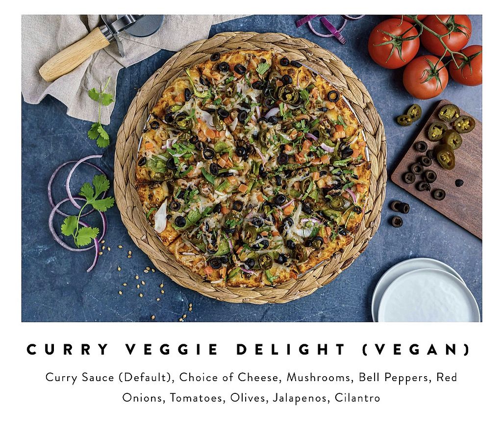 Serves meat, vegan options available. Fast-casual American and Indian fusion pizza franchise with a dedicated vegan section on the menu. Vegan pizza offerings include the vegan premium veggie, vegan aloo gobhi, vegan aloo chaat, vegan Indian gourmet veggie, and vegan curry veggie delight. Also provides event and corporate catering. Open Mon-Sun 11:00am-10:00pm.