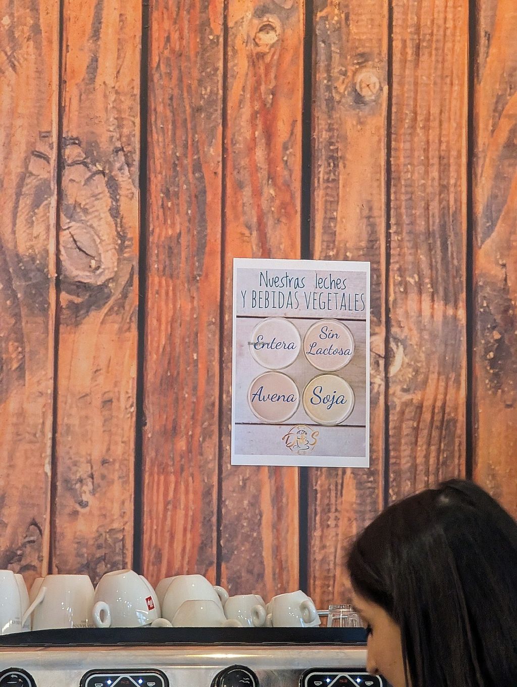 Disponen de bebida vegetal, 2 tipos de croissant veganos (cereales y relleno de chocolate, (los clásicos no son veganos)) y opción de tostada con mermelada o salada (humus, guacamole, tomate).