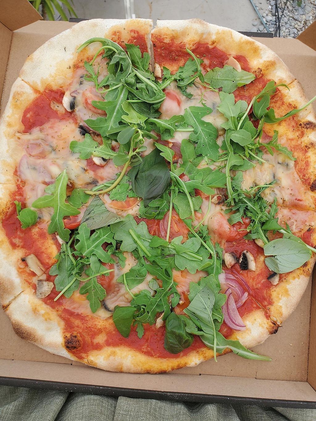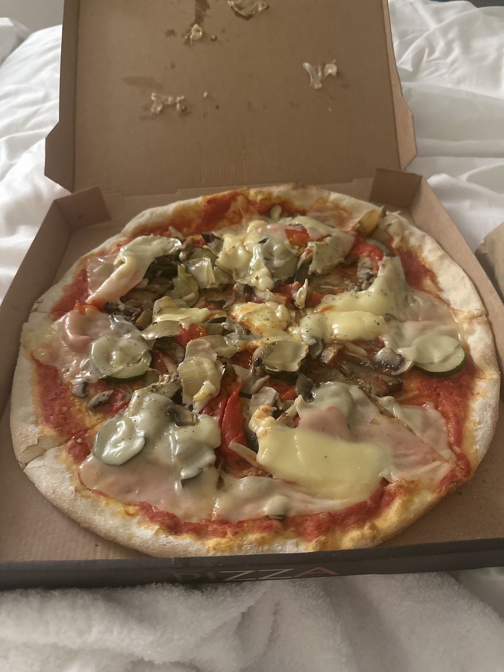 Vegan pizza Vegetalien with vegan cheese, aubergine, courgette, artich…